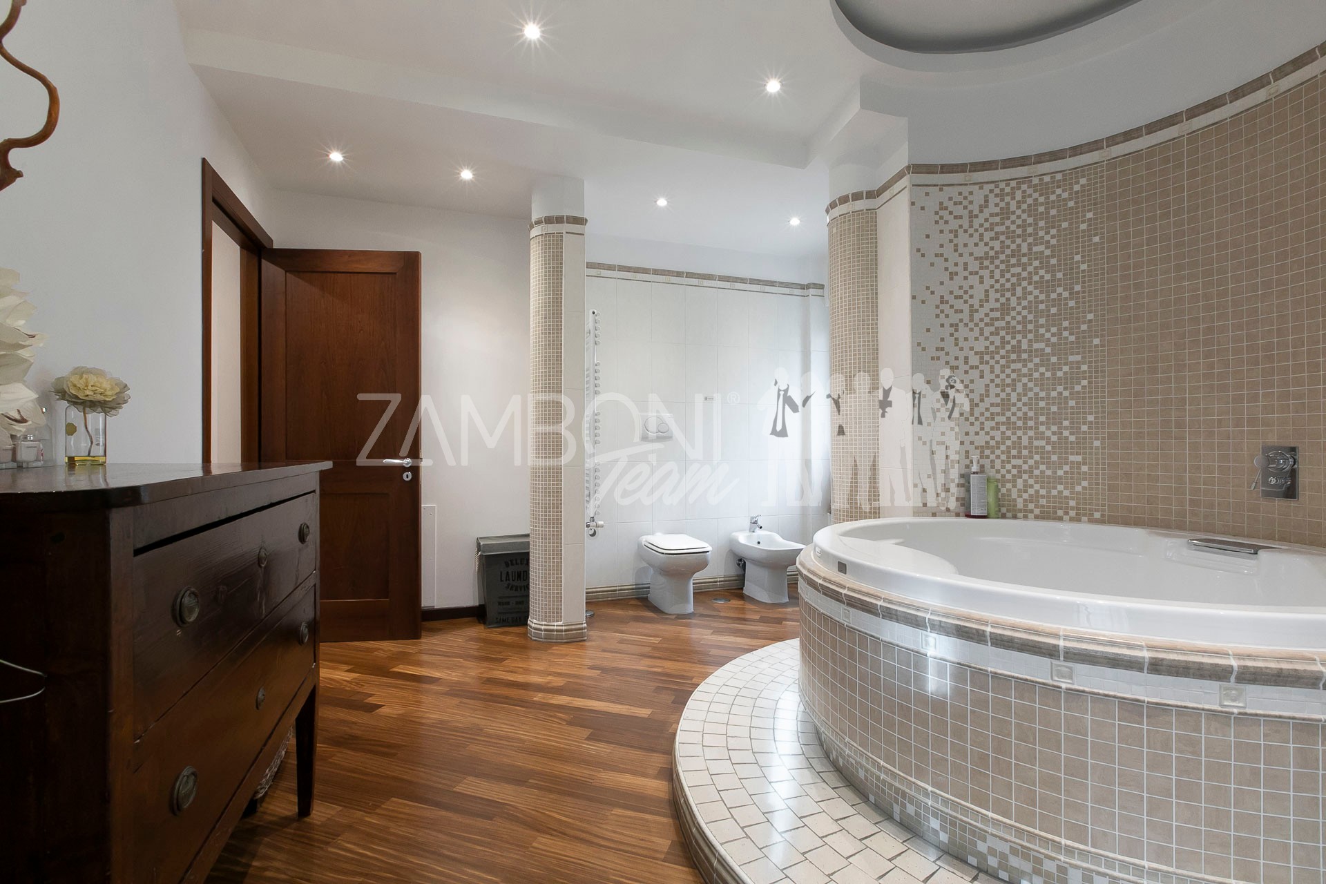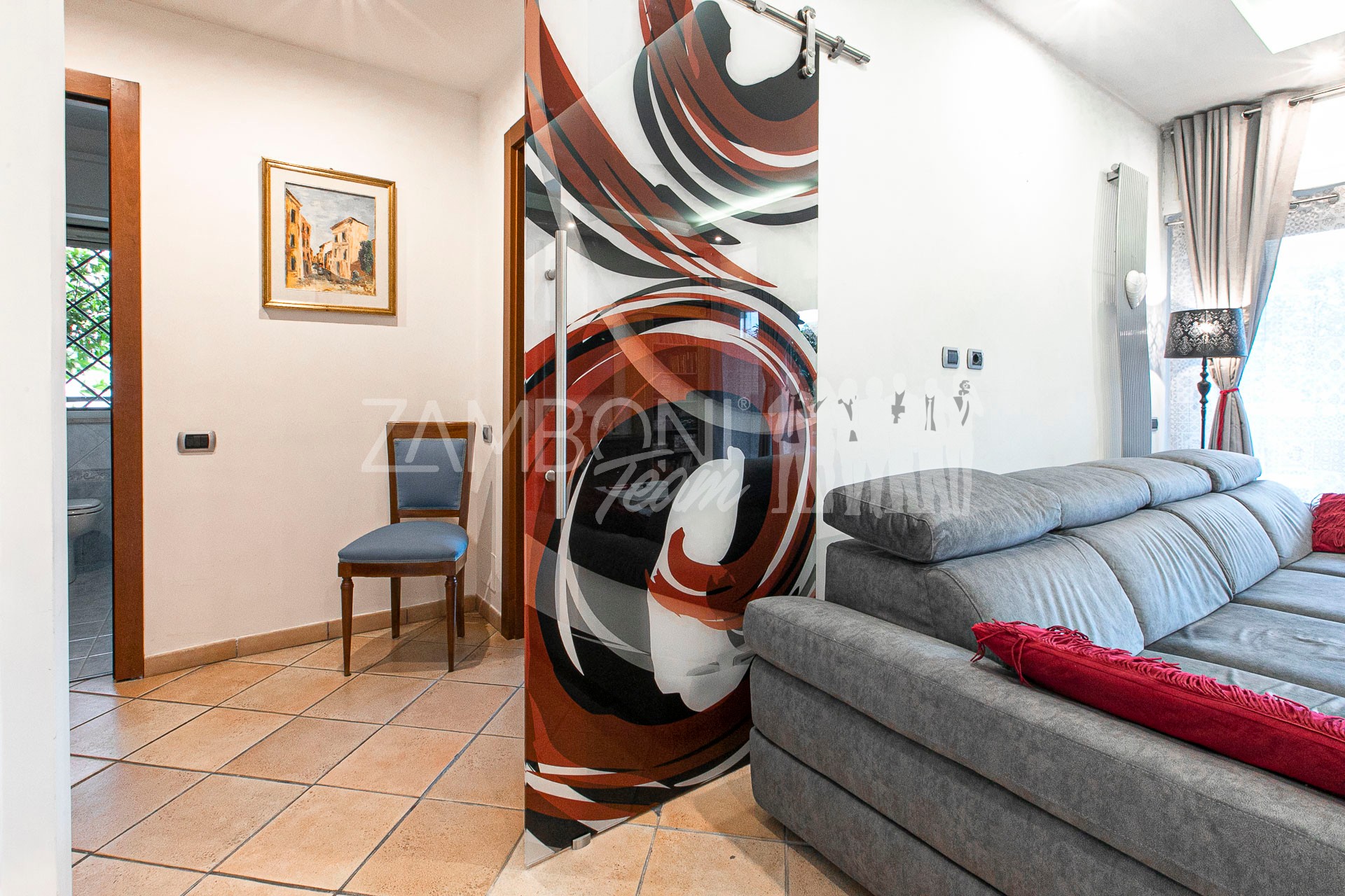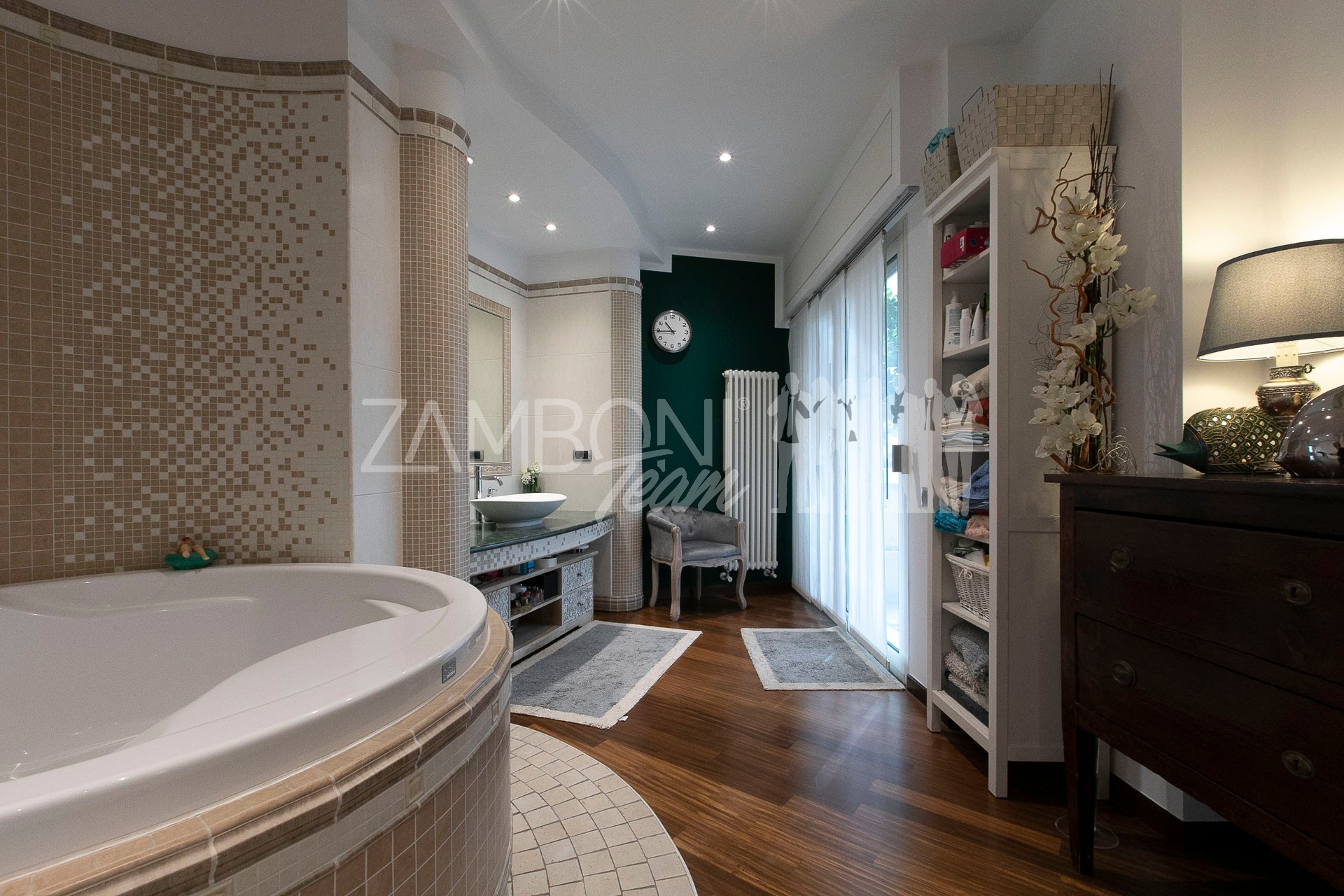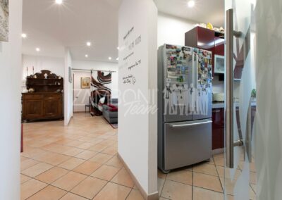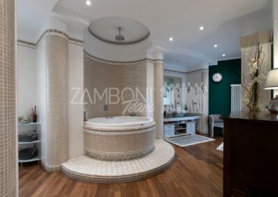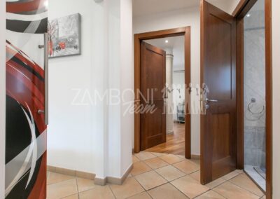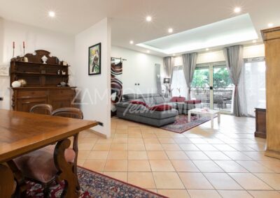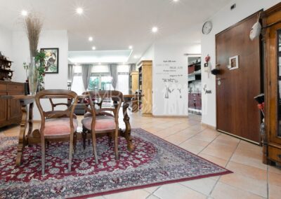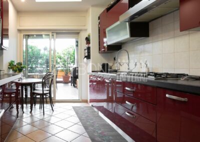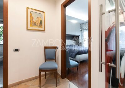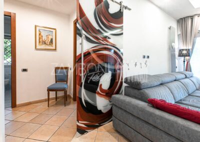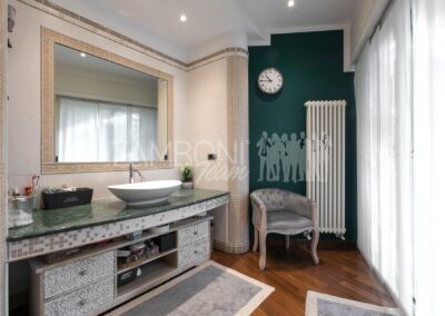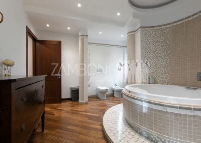 L’appartamento è composto da un ampio salone doppio comprendente un’ampia zona soggiorno, una zona pranzo e una comoda area relax con una finestra bow- window che dona ulteriore luce e atmosfera (regolarizzata con piano casa). La cucina, separata da una porta di design scorrevole in cristallo, è abitabile, pratica e funzionale, mentre la zona notte, separata anch’essa da una porta scorrevole in cristallo, offre una camera matrimoniale con parquet, un bagno di servizio con doccia e una camera da bagno dotata di una grande vasca idromassaggio e doccia circolare con rivestimento musivo. Le finiture pregiate, come le porte in legno massello e i termoarredi, impreziosiscono ulteriormente questi ambienti.
