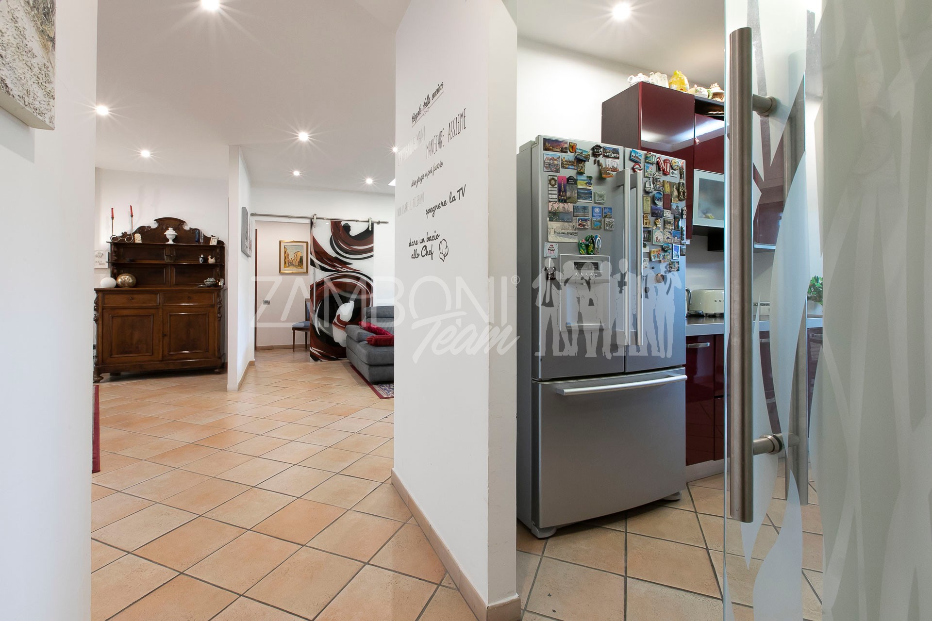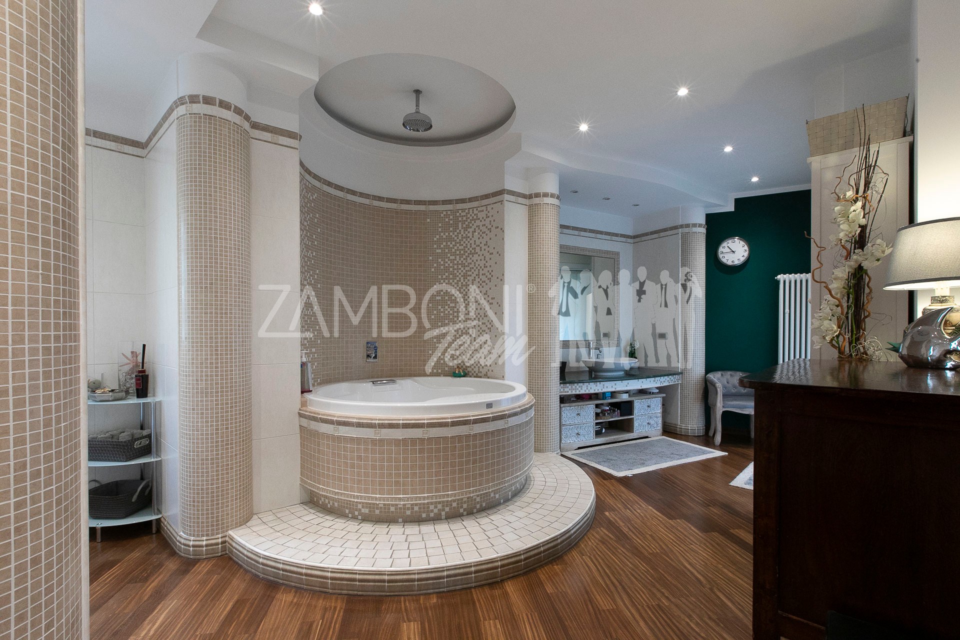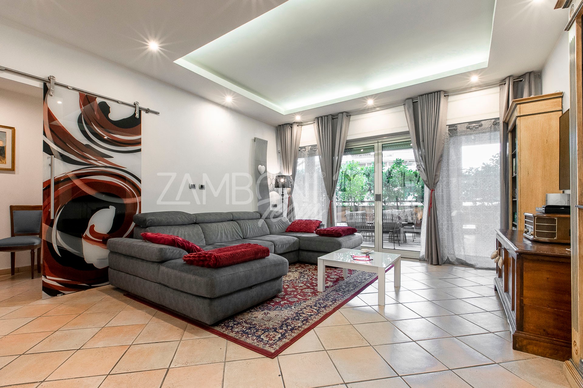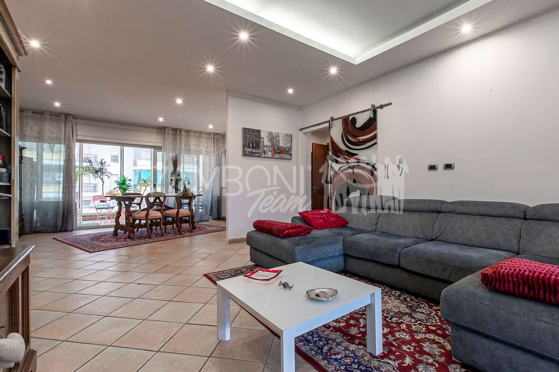 L’appartamento è composto da un ampio salone doppio comprendente un’ampia zona soggiorno, una zona pranzo e una comoda area relax con una finestra bow- window che dona ulteriore luce e atmosfera (regolarizzata con piano casa). La cucina, separata da una porta di design scorrevole in cristallo, è abitabile, pratica e funzionale, mentre la zona notte, separata anch’essa da una porta scorrevole in cristallo, offre una camera matrimoniale con parquet, un bagno di servizio con doccia e una camera da bagno dotata di una grande vasca idromassaggio e doccia circolare con rivestimento musivo. Le finiture pregiate, come le porte in legno massello e i termoarredi, impreziosiscono ulteriormente questi ambienti.