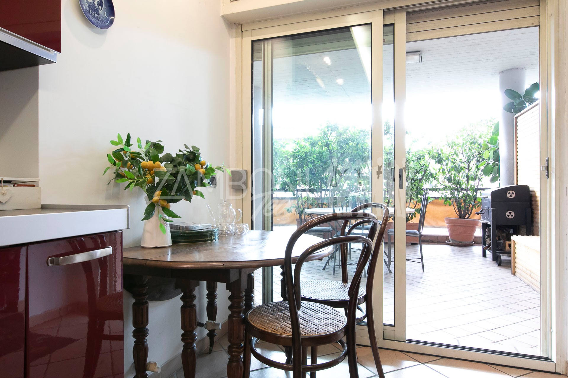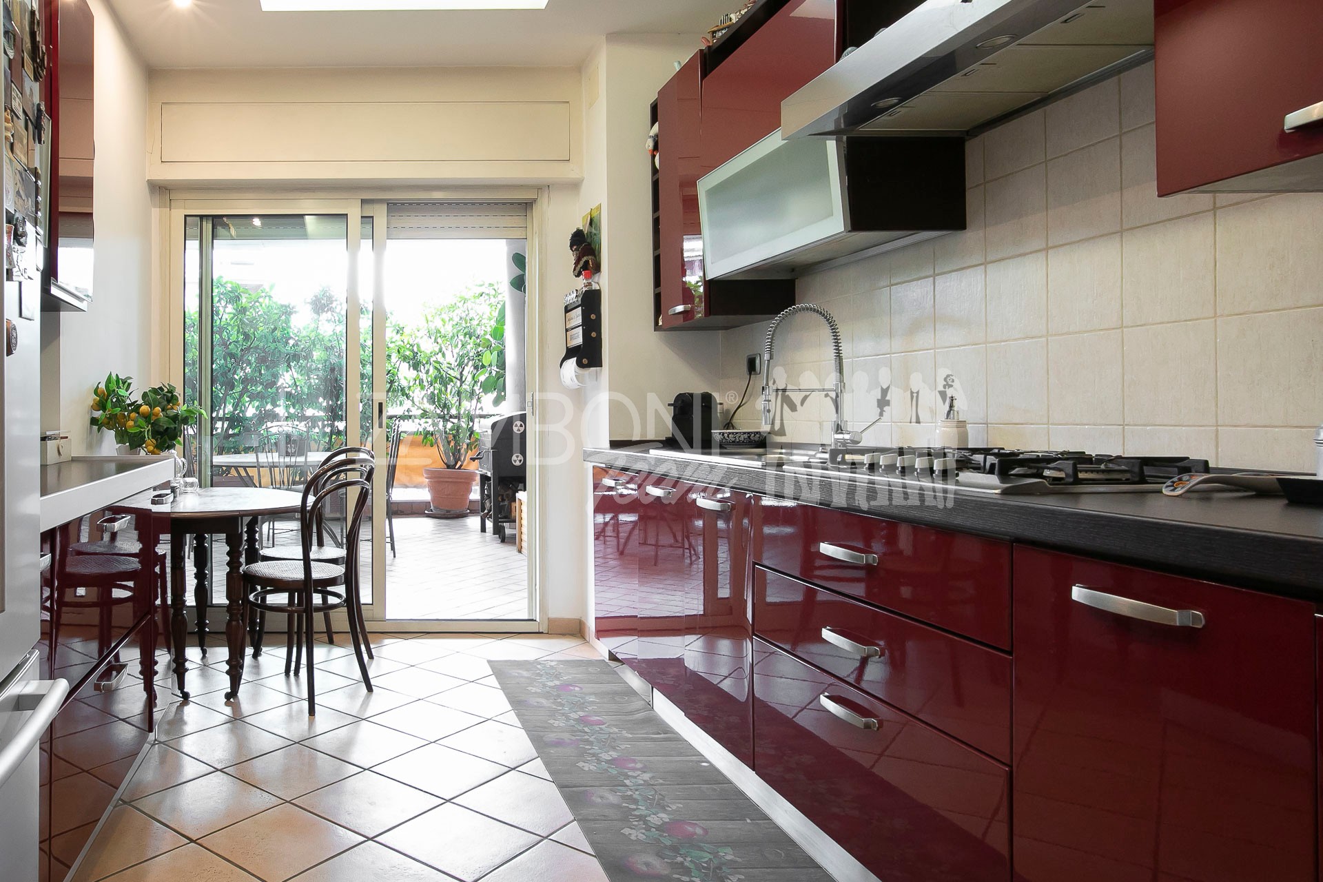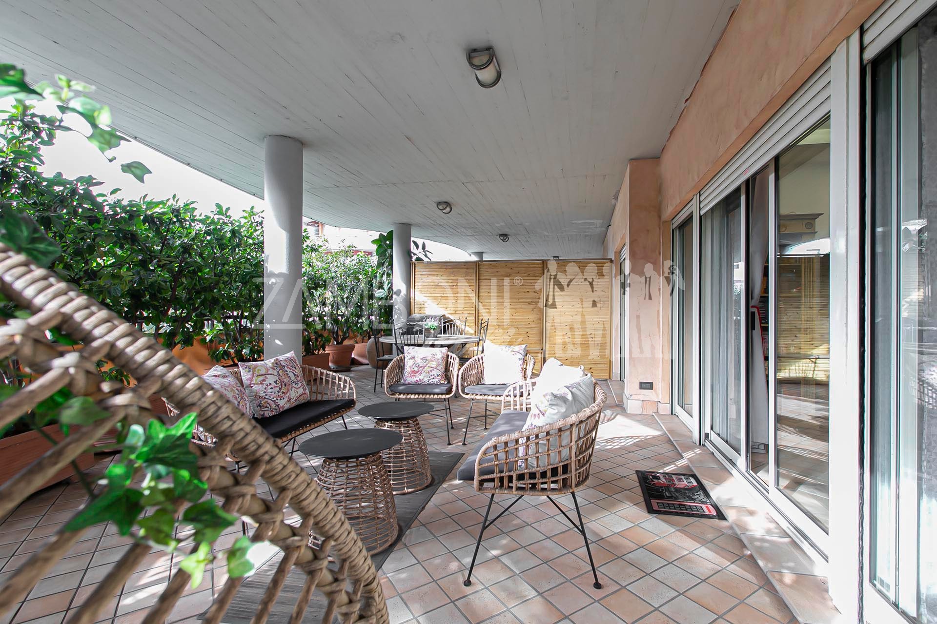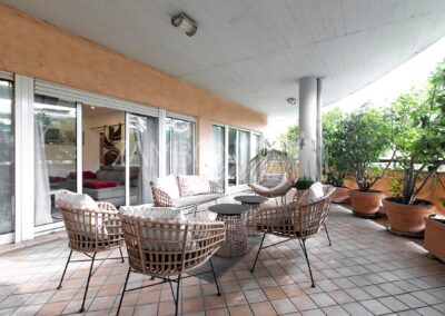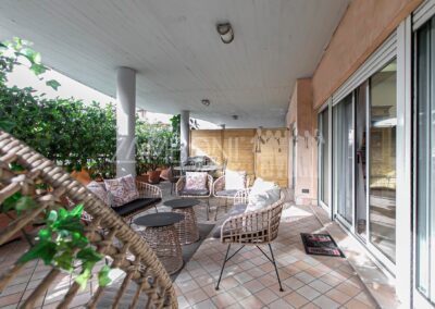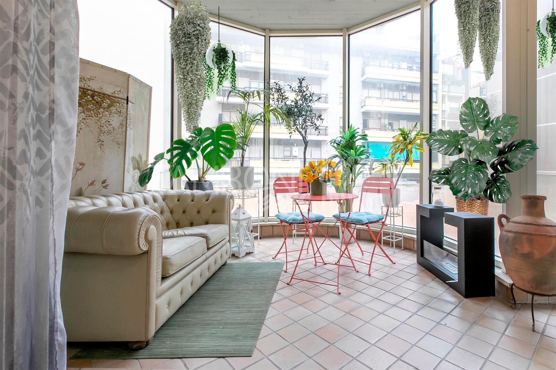 Il vero fiore all’occhiello di questa proprietà è il terrazzo di circa 70 mq, che circonda l’intero appartamento, adornato da piante lungo tutto il perimetro, che ne garantiscono privacy e tranquillità regalando uno spazio esterno ideale per godersi momenti di tranquillità all’aperto e momenti conviviali con gli amici e garantendo una luminosità naturale in ogni angolo della casa. Ogni stanza ha accesso diretto al terrazzo, il che consente di avere luce e ventilazione ottimali durante tutto il giorno, grazie all’ottima esposizione.