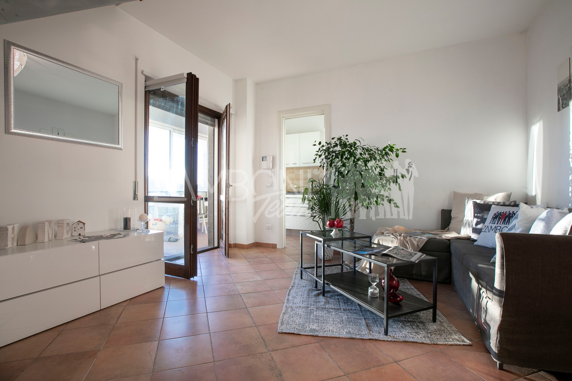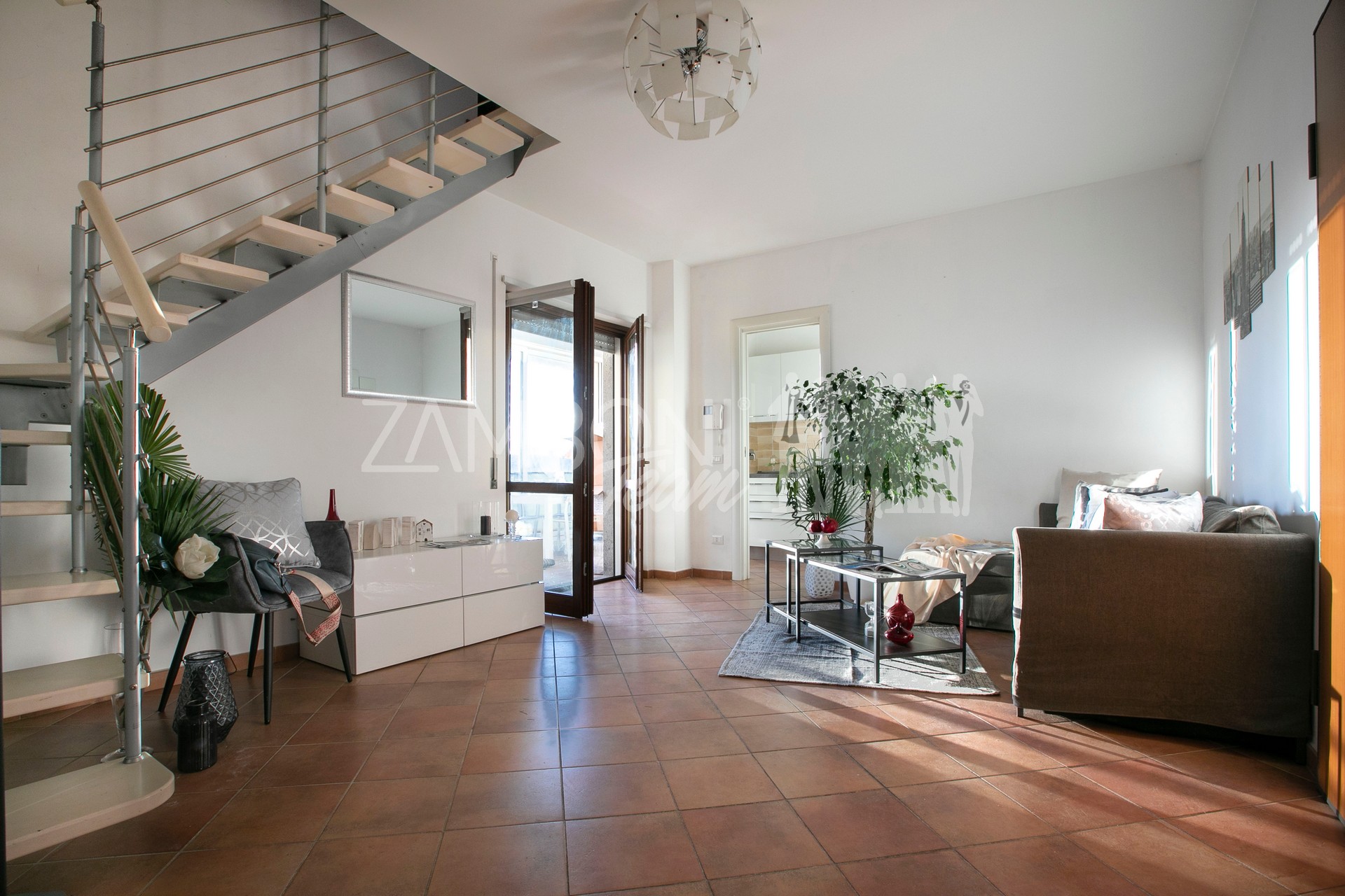 Questo attico su due livelli con ampi spazi esterni è ideale come prima casa di una giovane coppia o come possibilità di investimento grazie alla facilità di poterne ricavare un reddito da locazione.