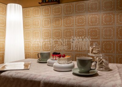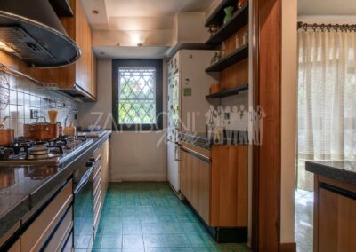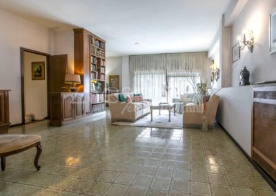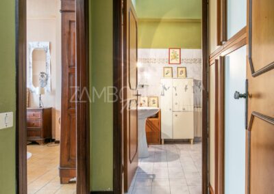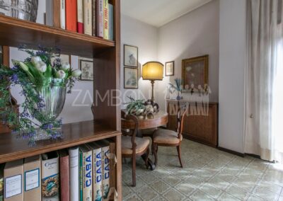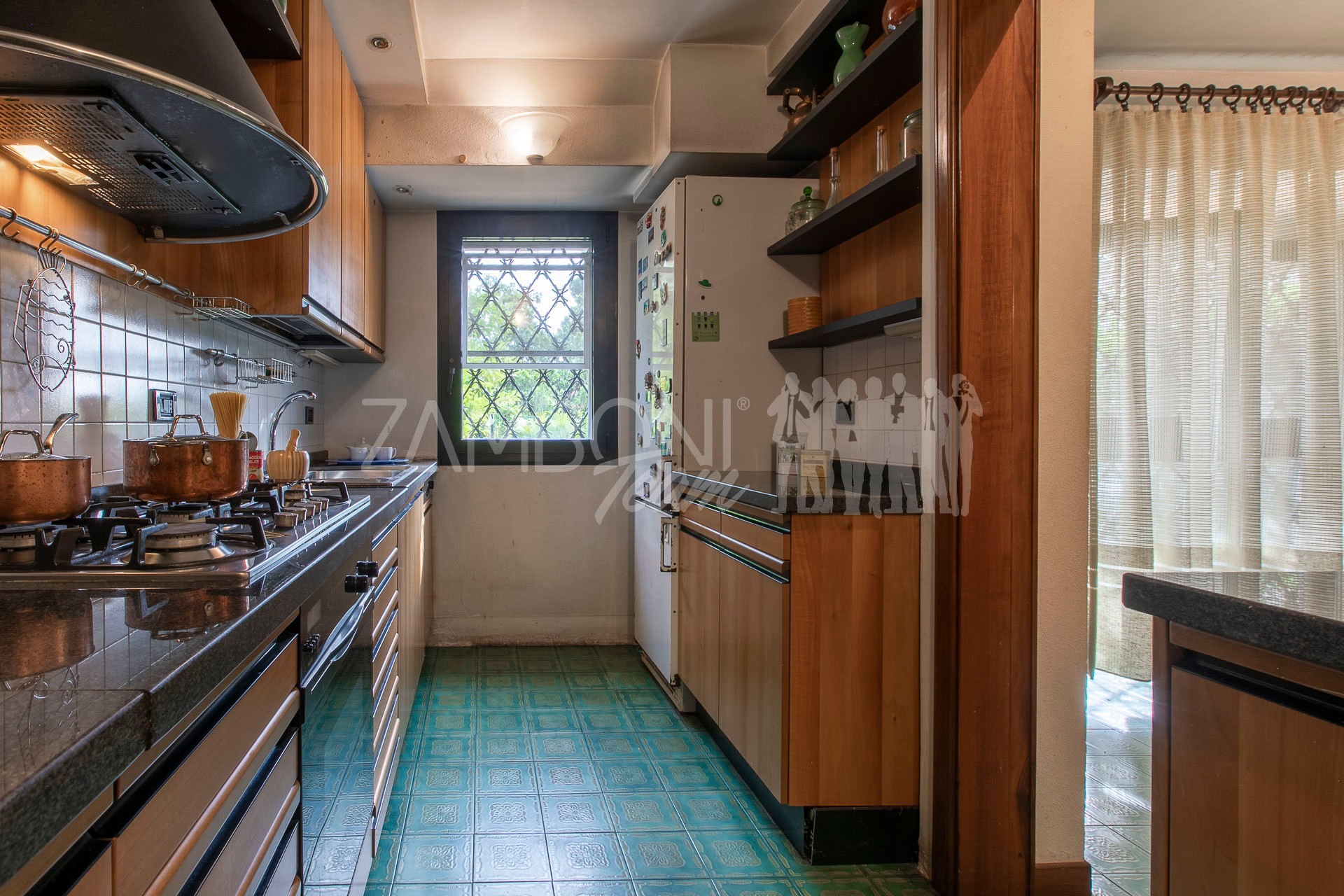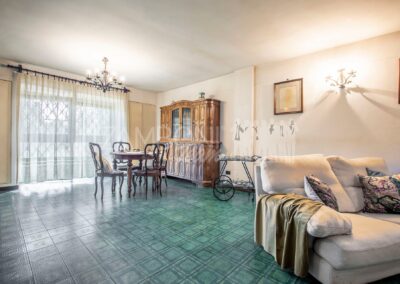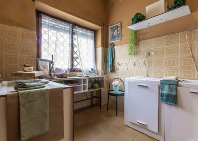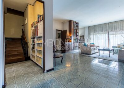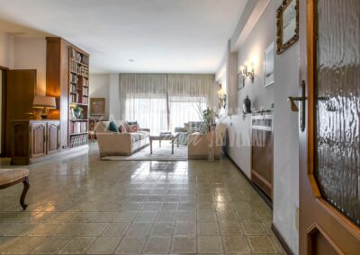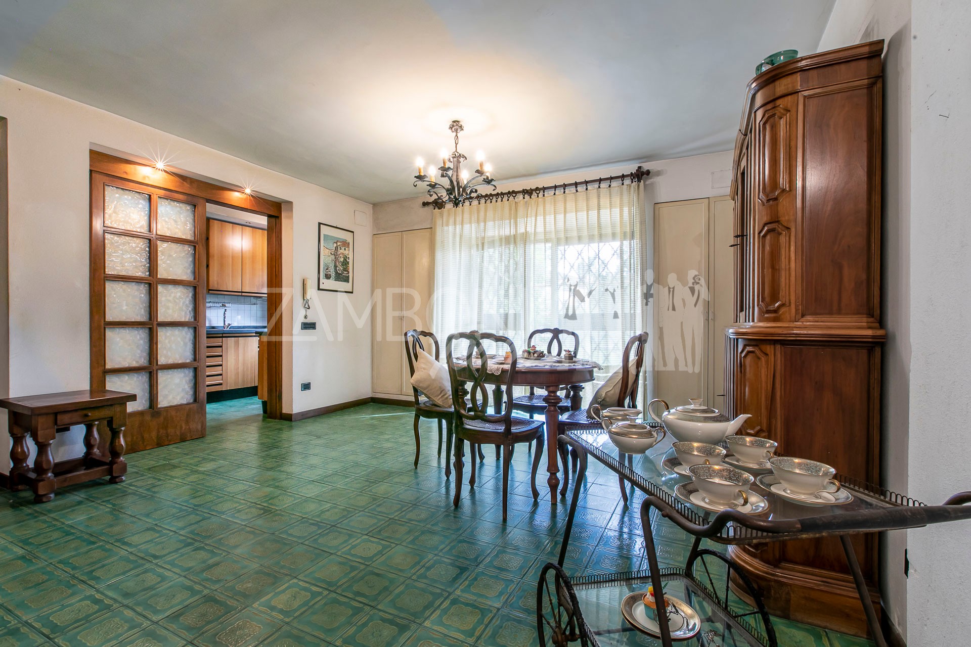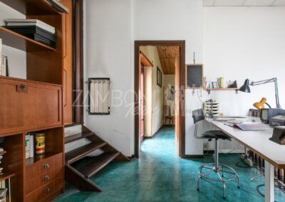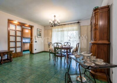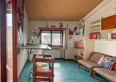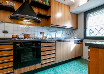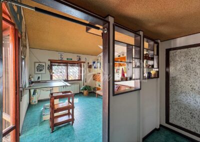 Entrando al piano terra, dove la luce è protagonista grazie alle ampie vetrate e all’ottima esposizione, troviamo un salone doppio con zona pranzo che si affaccia sul giardino attraverso un balcone panoramico, mentre una stanza polifunzionale – già predisposta come cucina – offre infinite possibilità: studio, camera ospiti, zona relax o cucina indipendente.