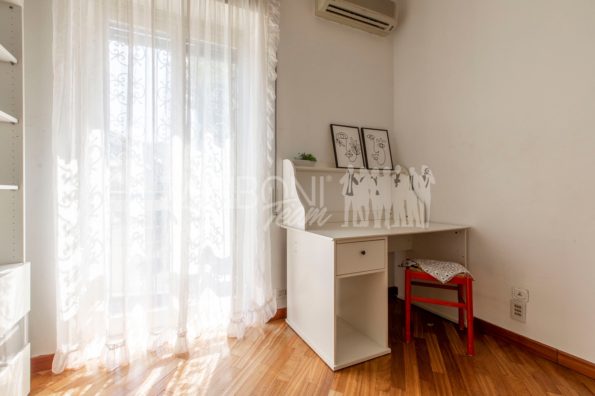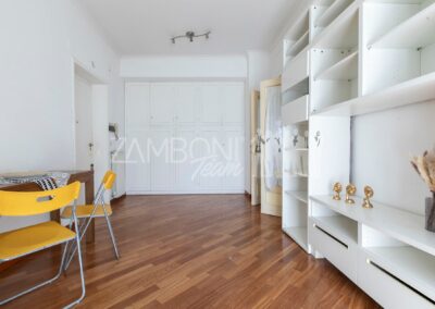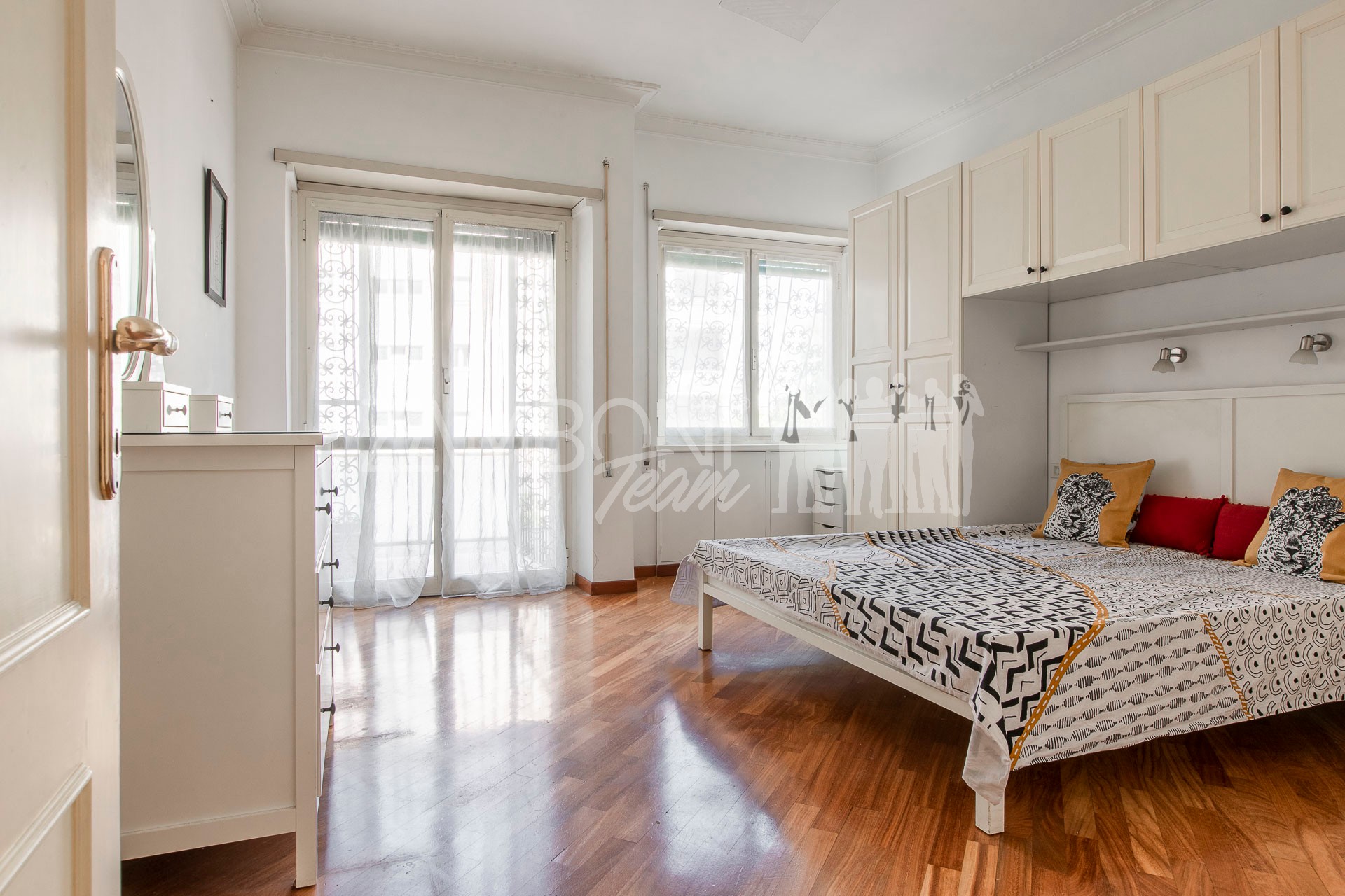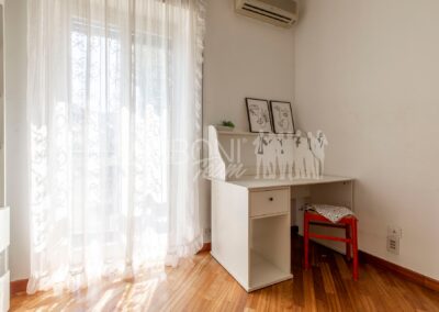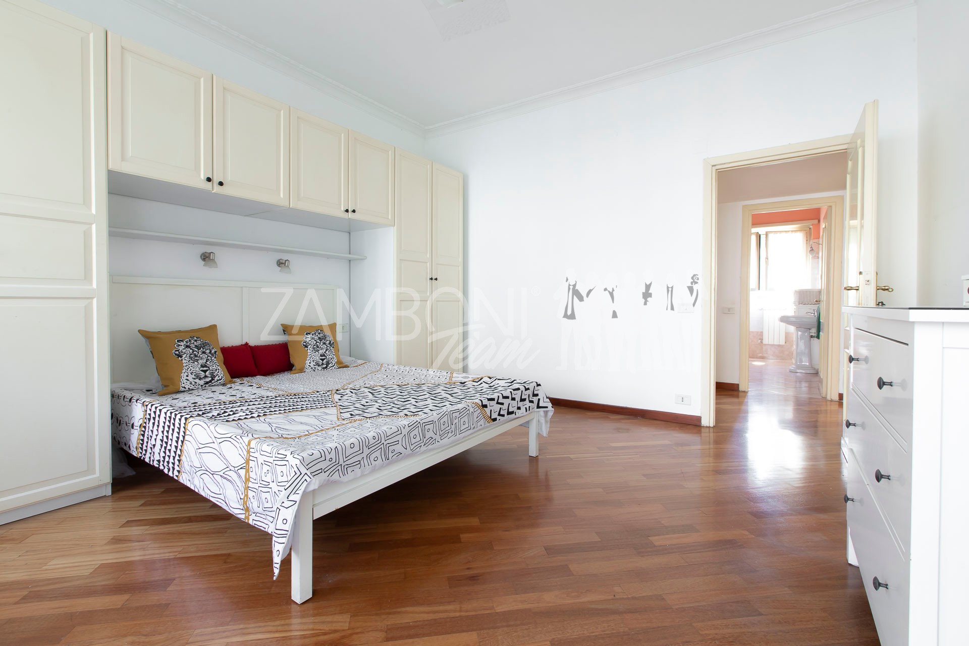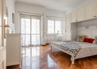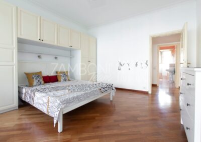 La camera da letto matrimoniale è silenziosa e ben proporzionata, ideale per ospitare comodamente un armadio capiente, una zona smart working o una postazione relax.