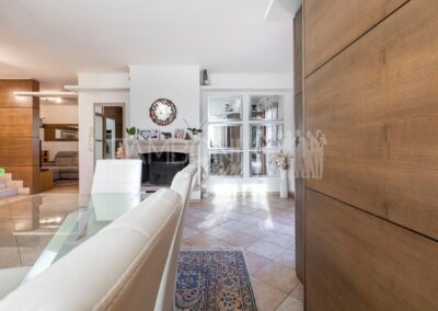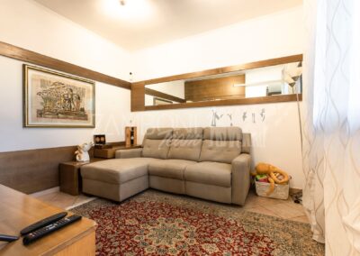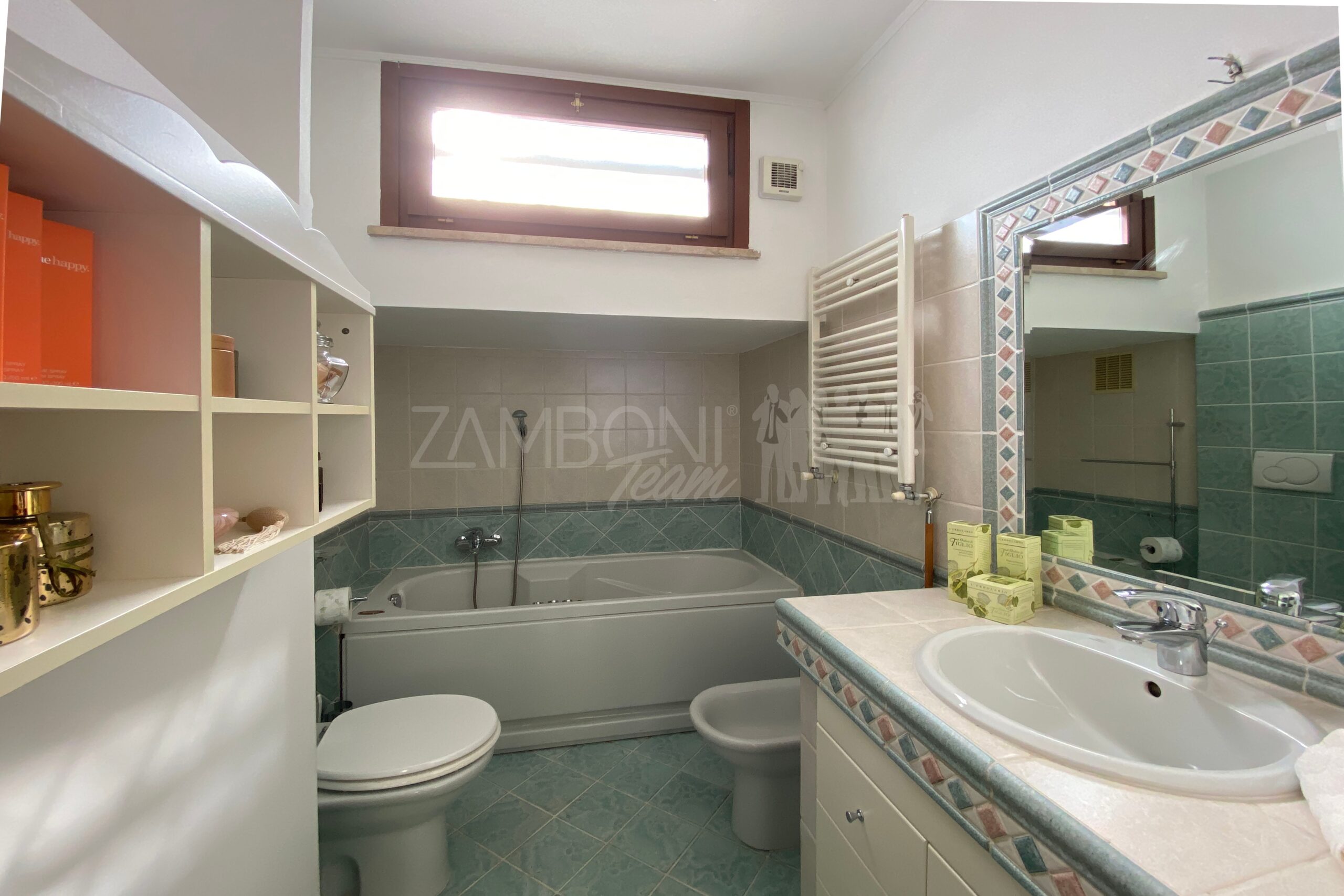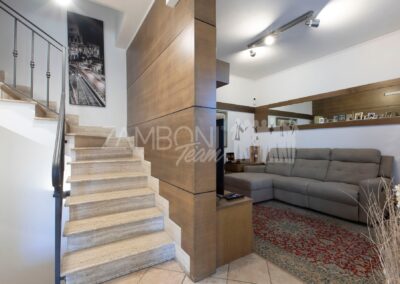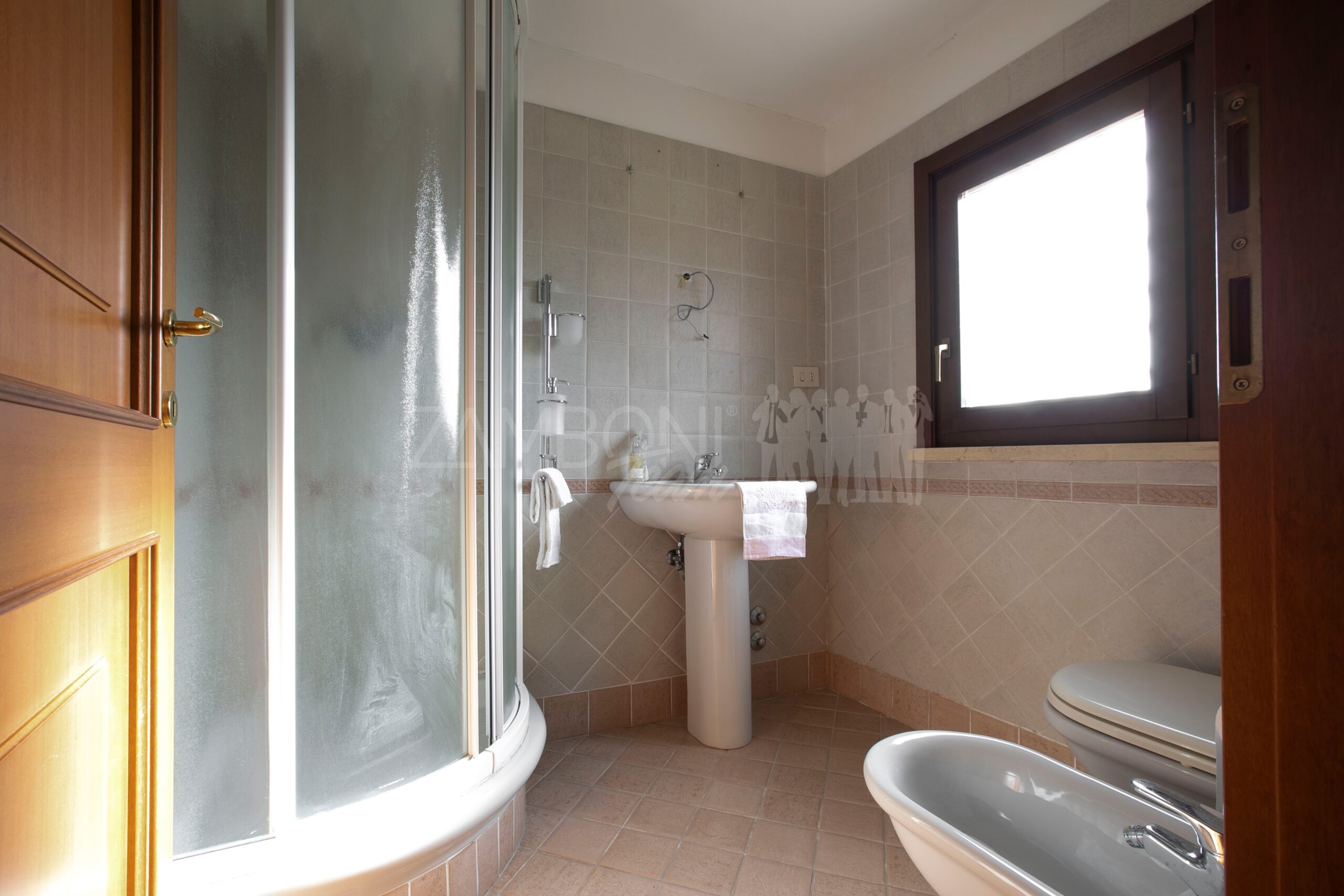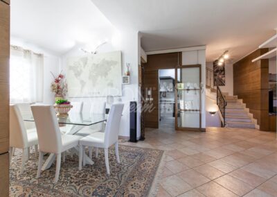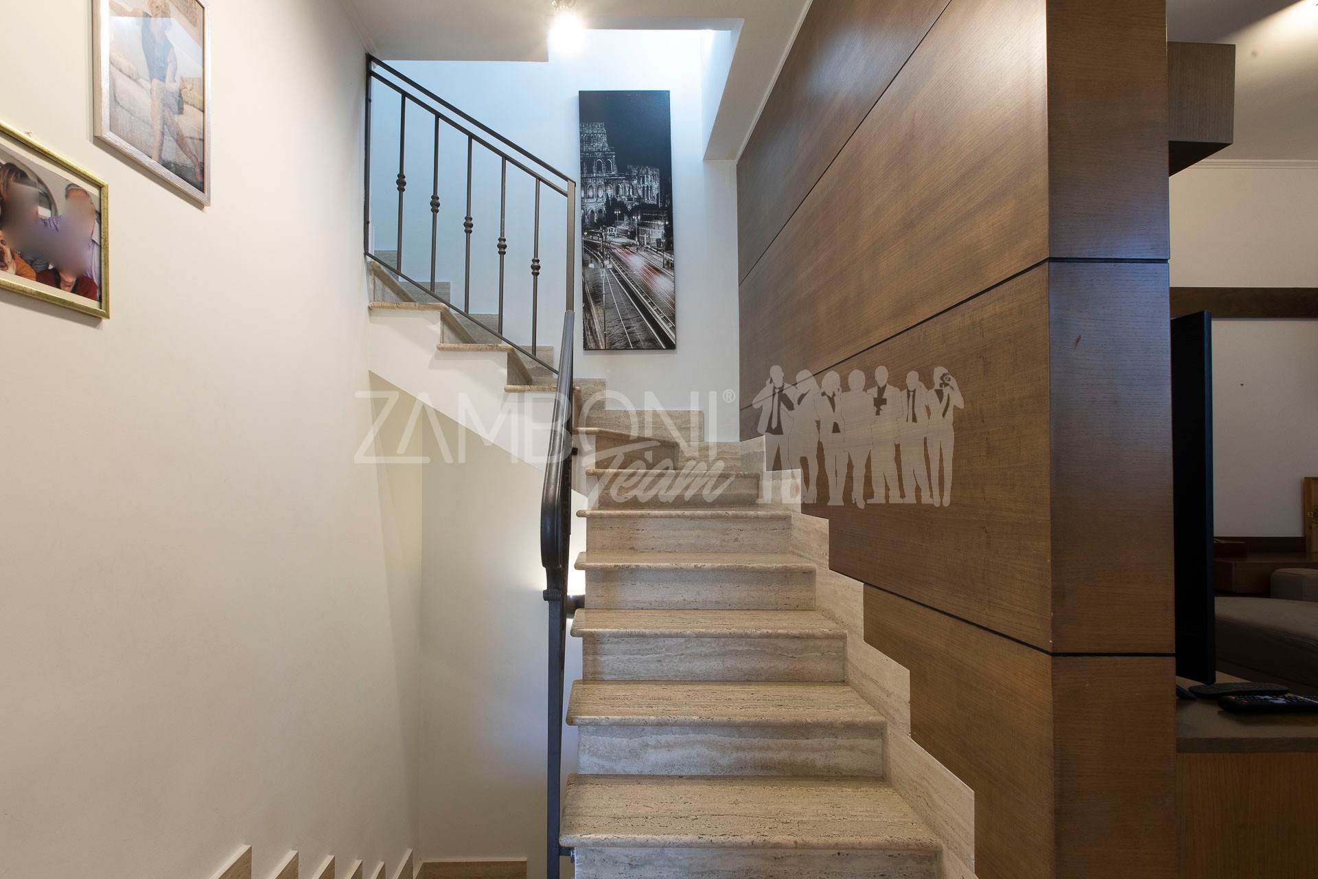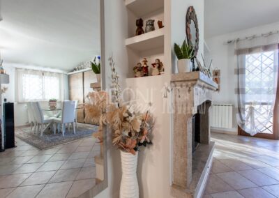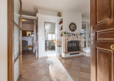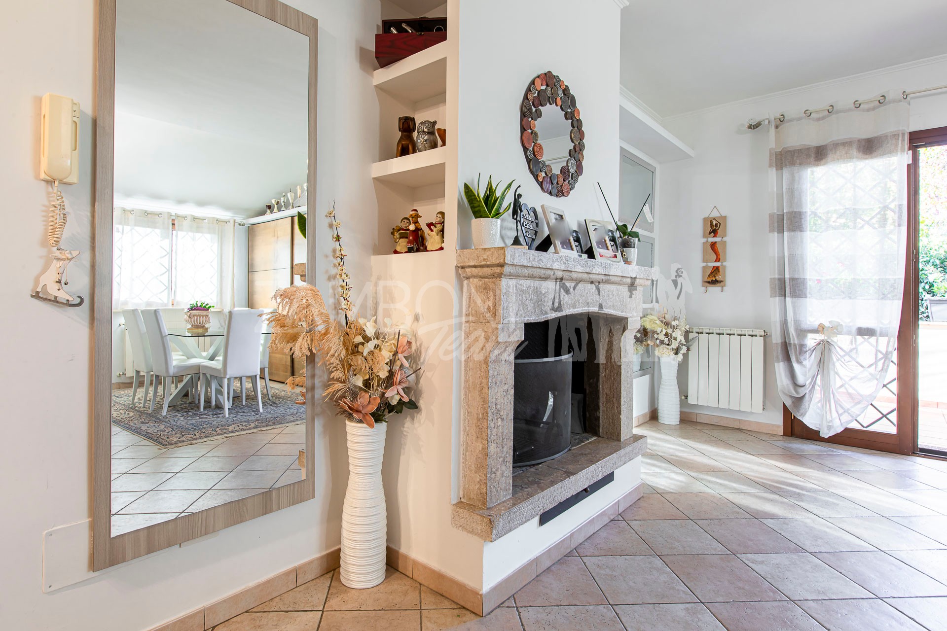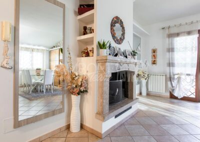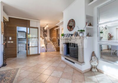 L’abitazione è ottimamente distribuita: dall’ingresso principale si accede al piano terra rialzato, dove troviamo un accogliente soggiorno con camino e una cucina separata da una porta a vetri scorrevole. Segue un ampio salone/zona relax e una veranda assolata con vista sul giardino.