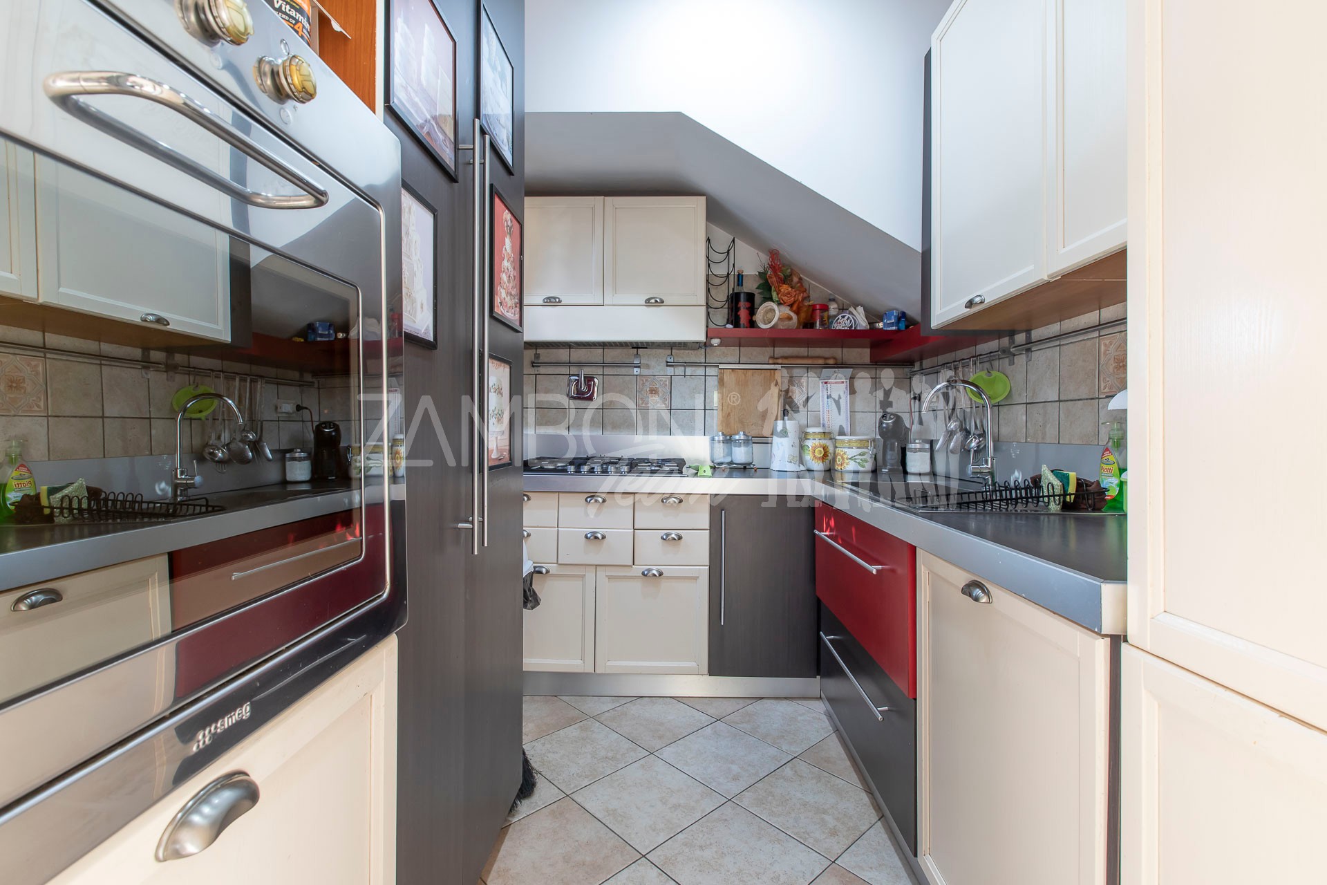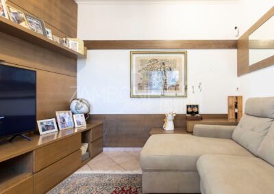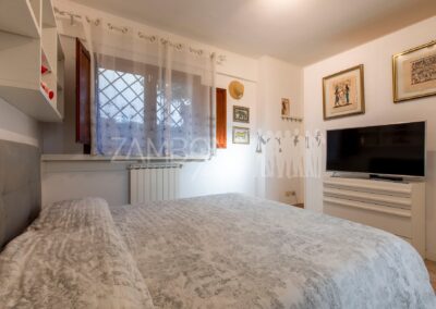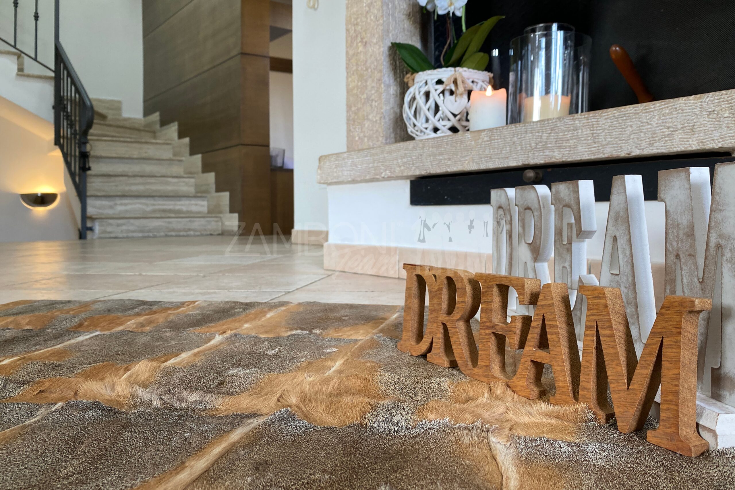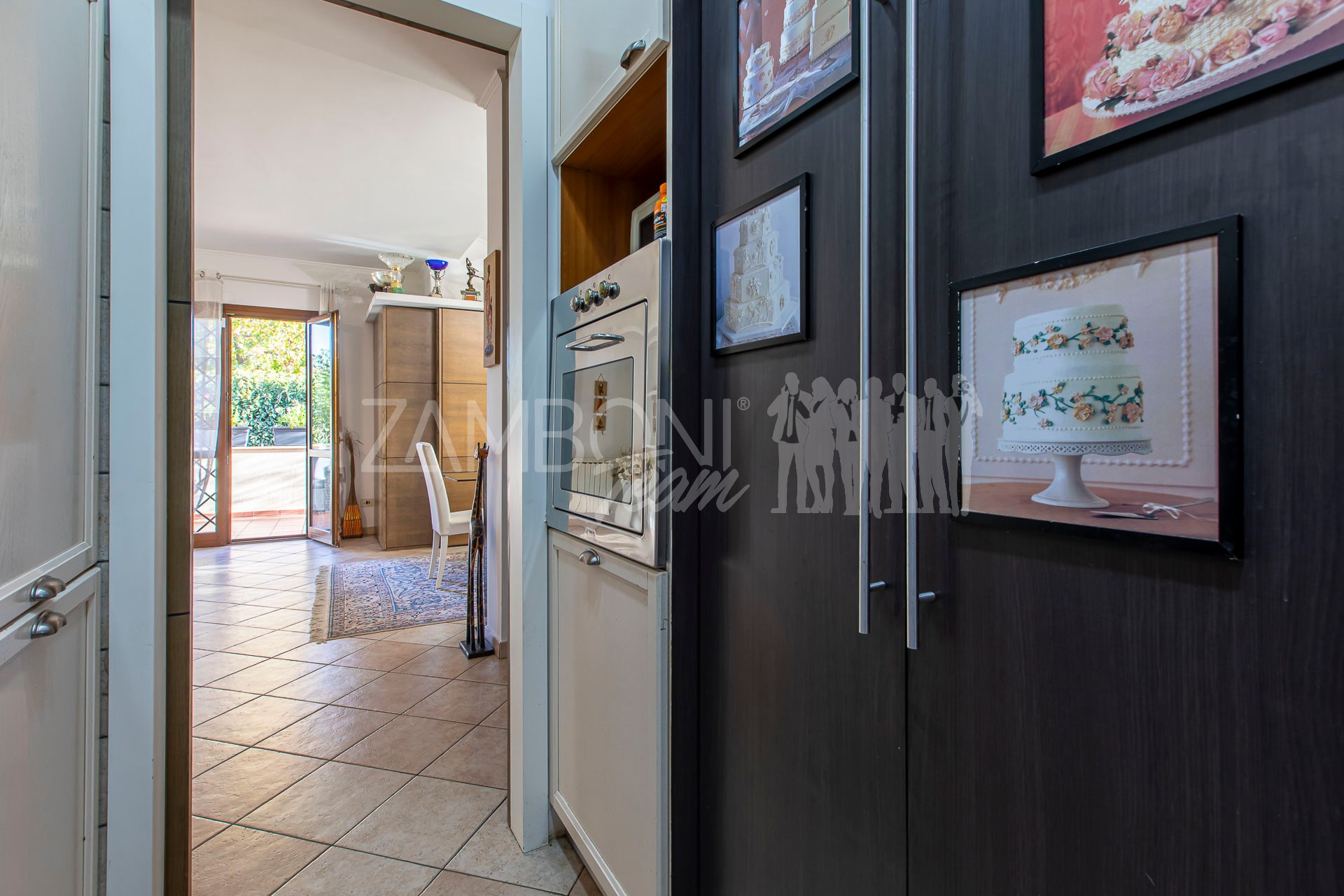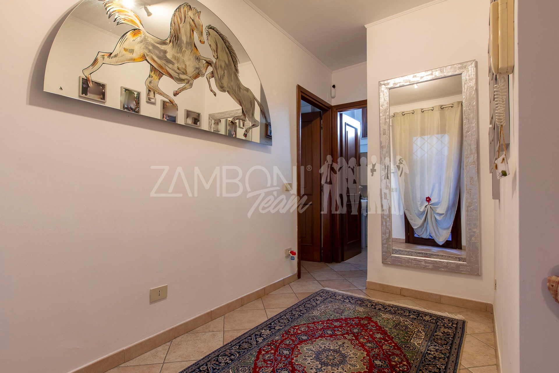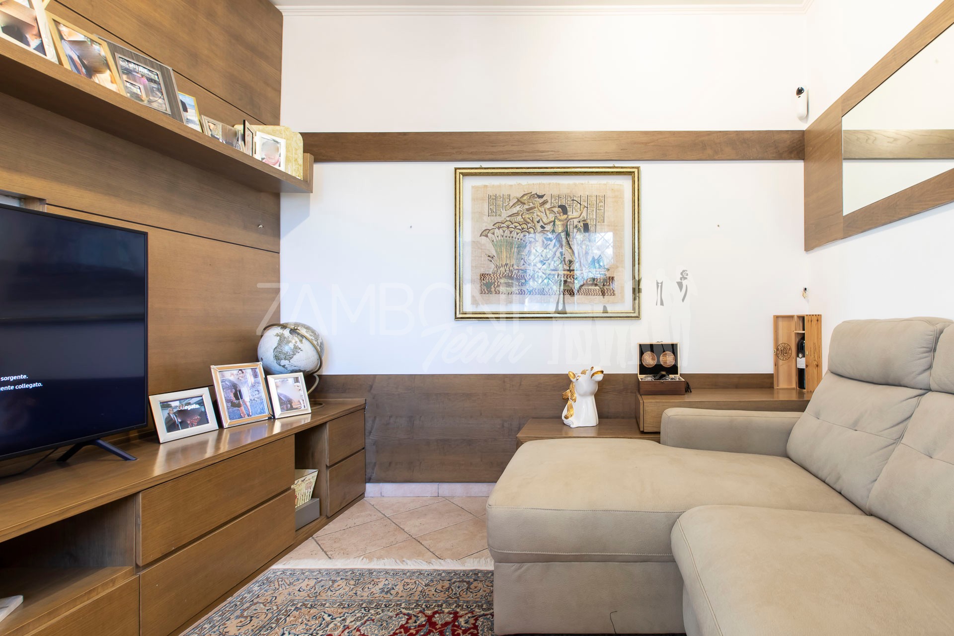 L’abitazione è ottimamente distribuita: dall’ingresso principale si accede al piano terra rialzato, dove troviamo un accogliente soggiorno con camino e una cucina separata da una porta a vetri scorrevole. Segue un ampio salone/zona relax e una veranda assolata con vista sul giardino.