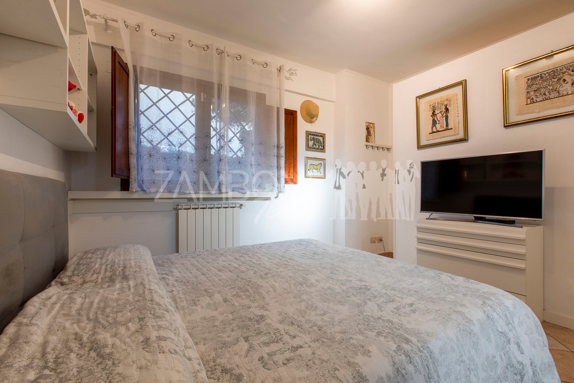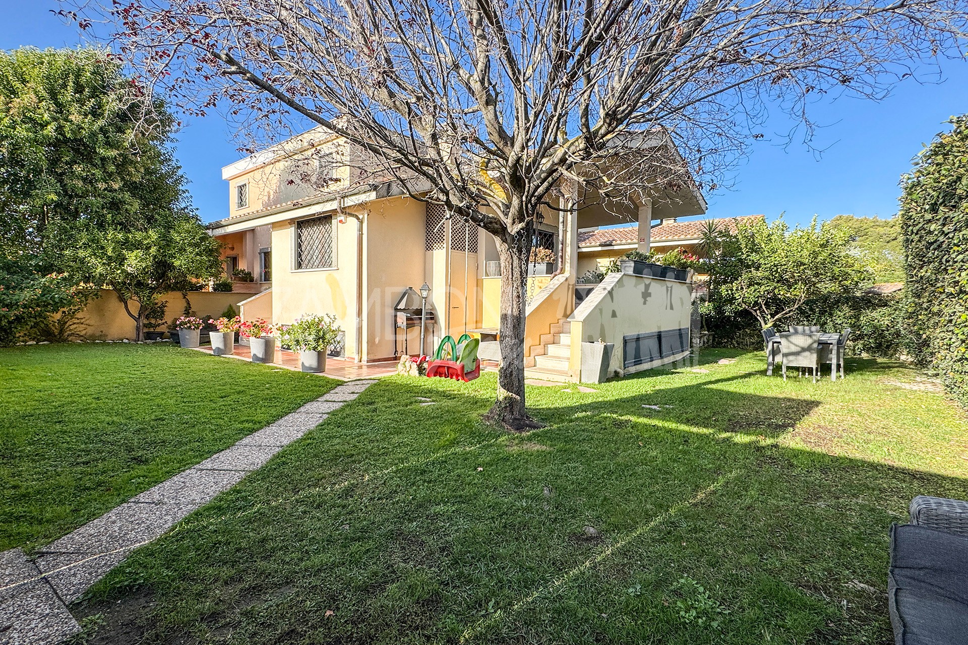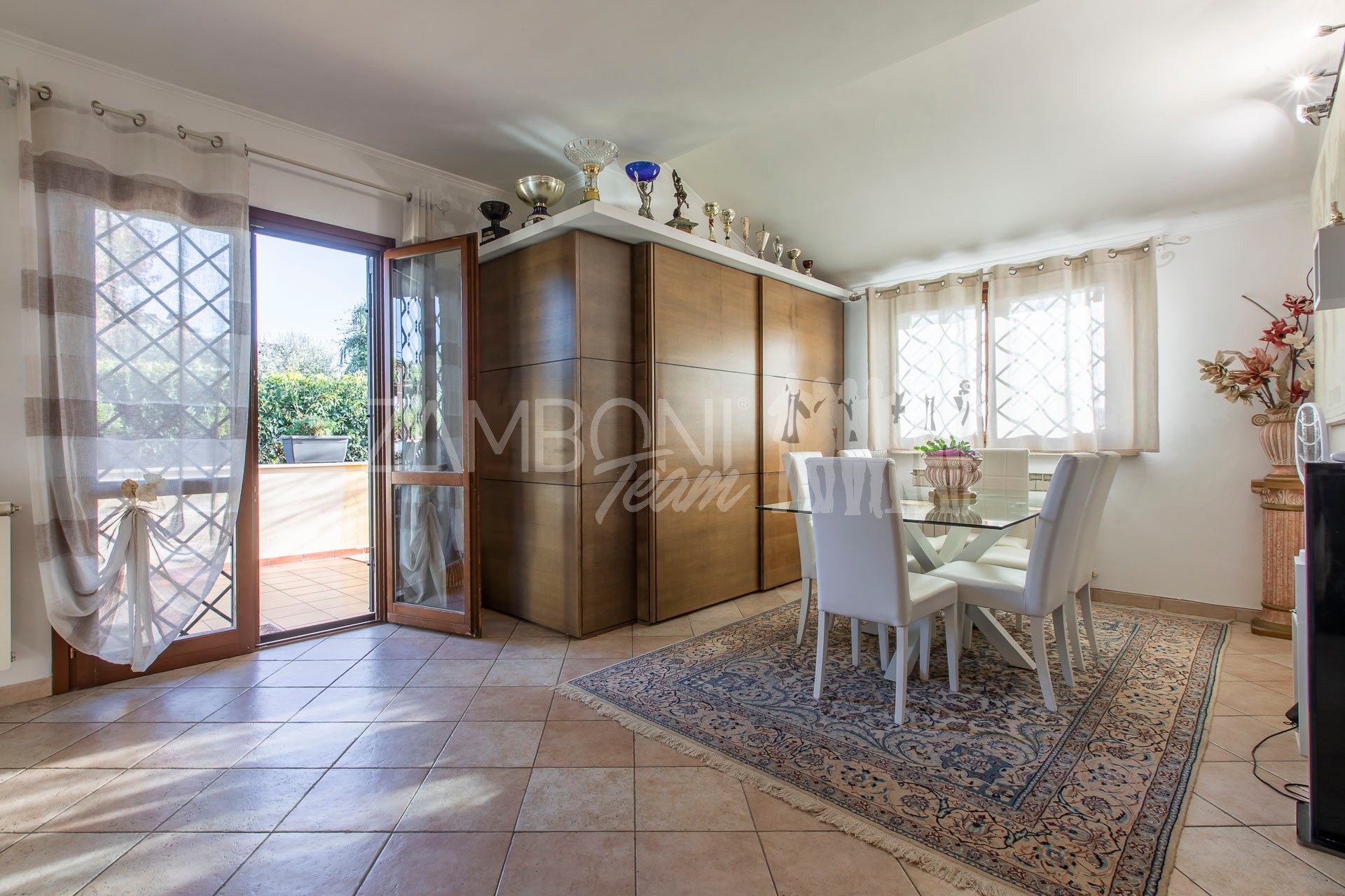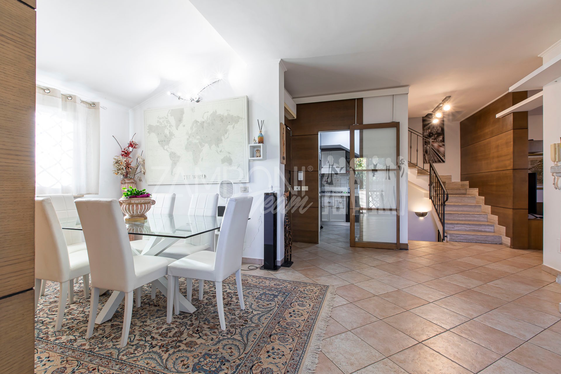 Delizioso villino quadrifamiliare disposto su due livelli più torretta, situato in Via Giulio Bertoni, nella zona residenziale dell’Infernetto più prossima a Viale Cristoforo Colombo.