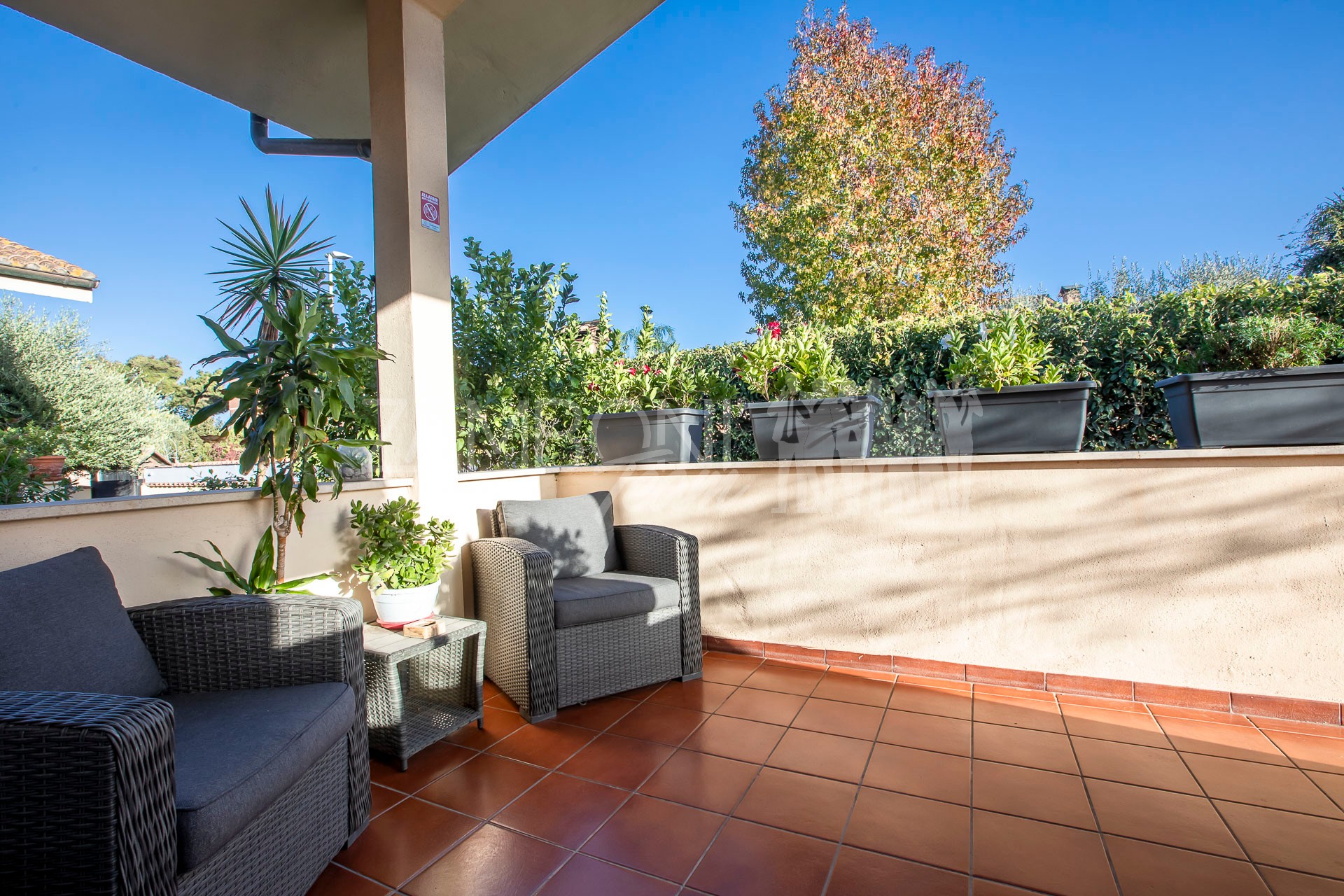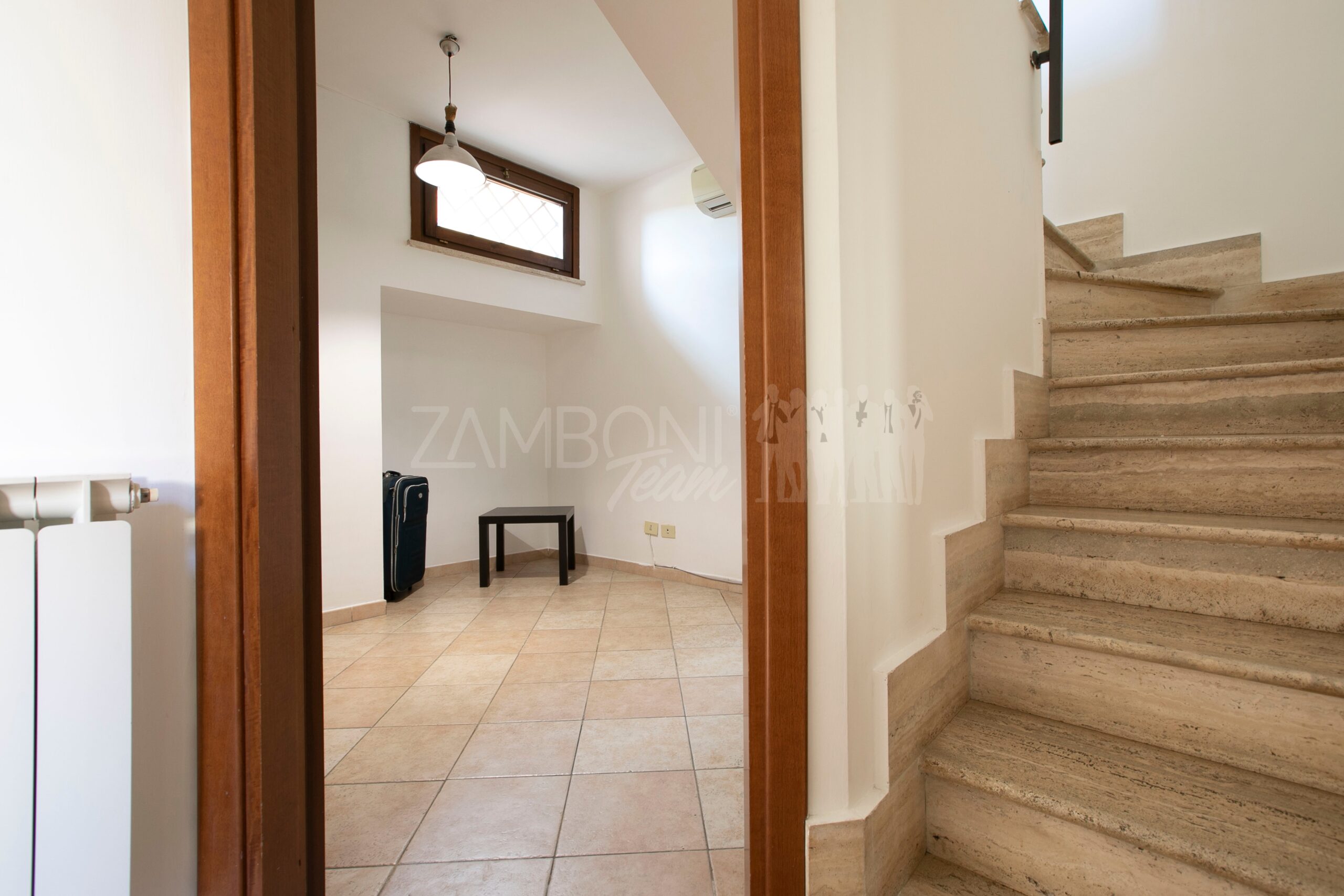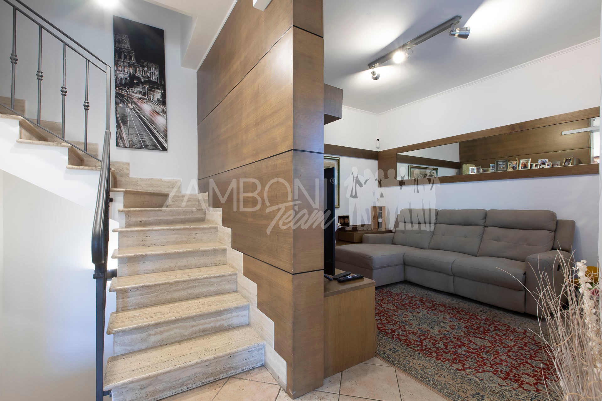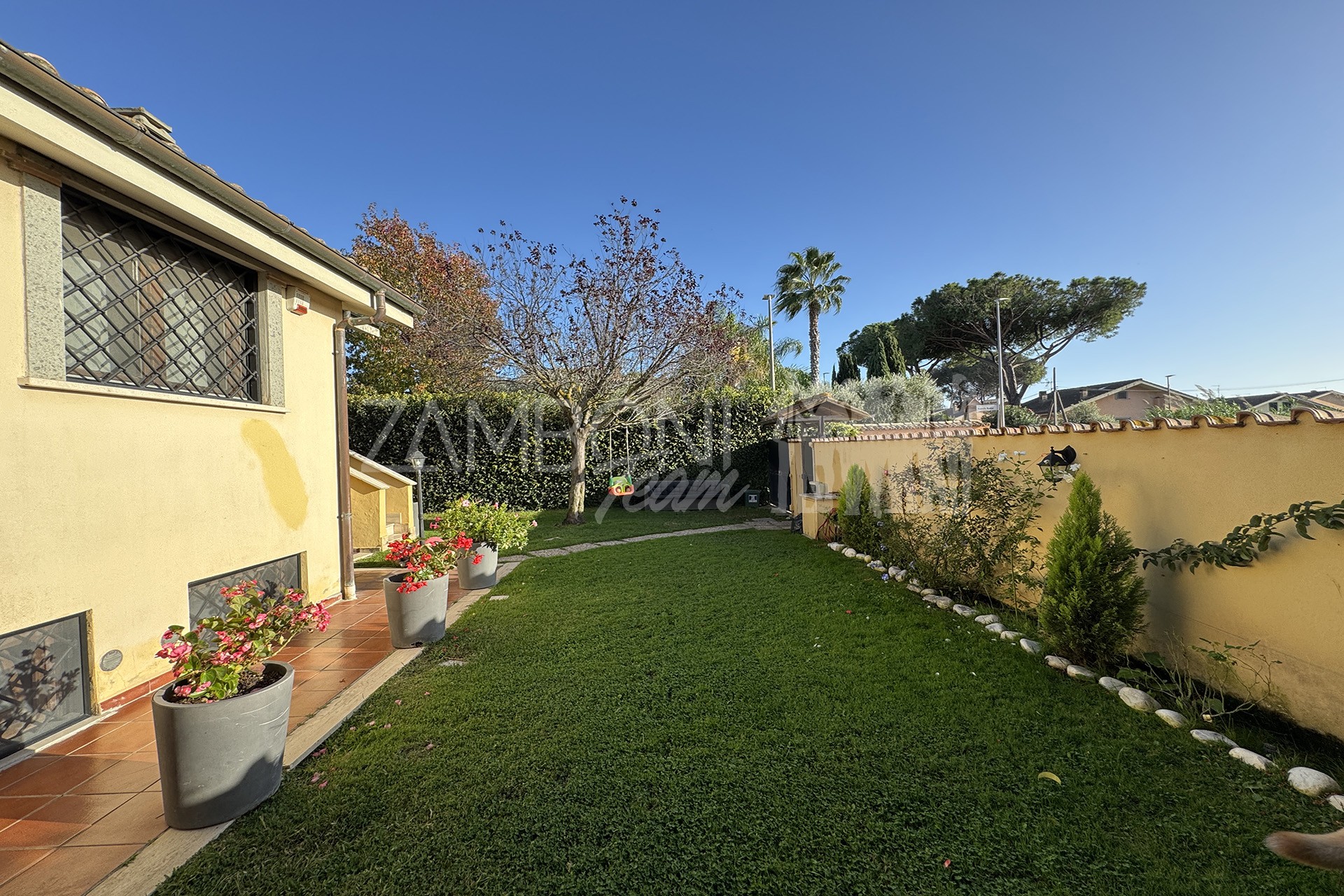 Delizioso villino quadrifamiliare disposto su due livelli più torretta, situato in Via Giulio Bertoni, nella zona residenziale dell’Infernetto più prossima a Viale Cristoforo Colombo.