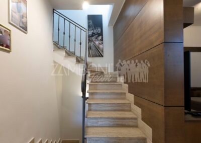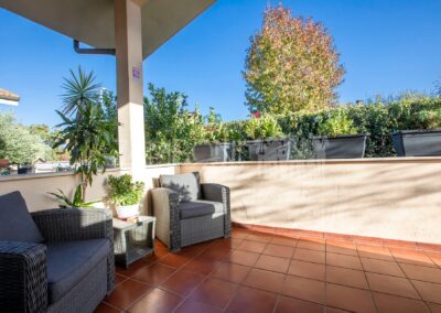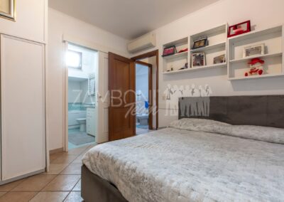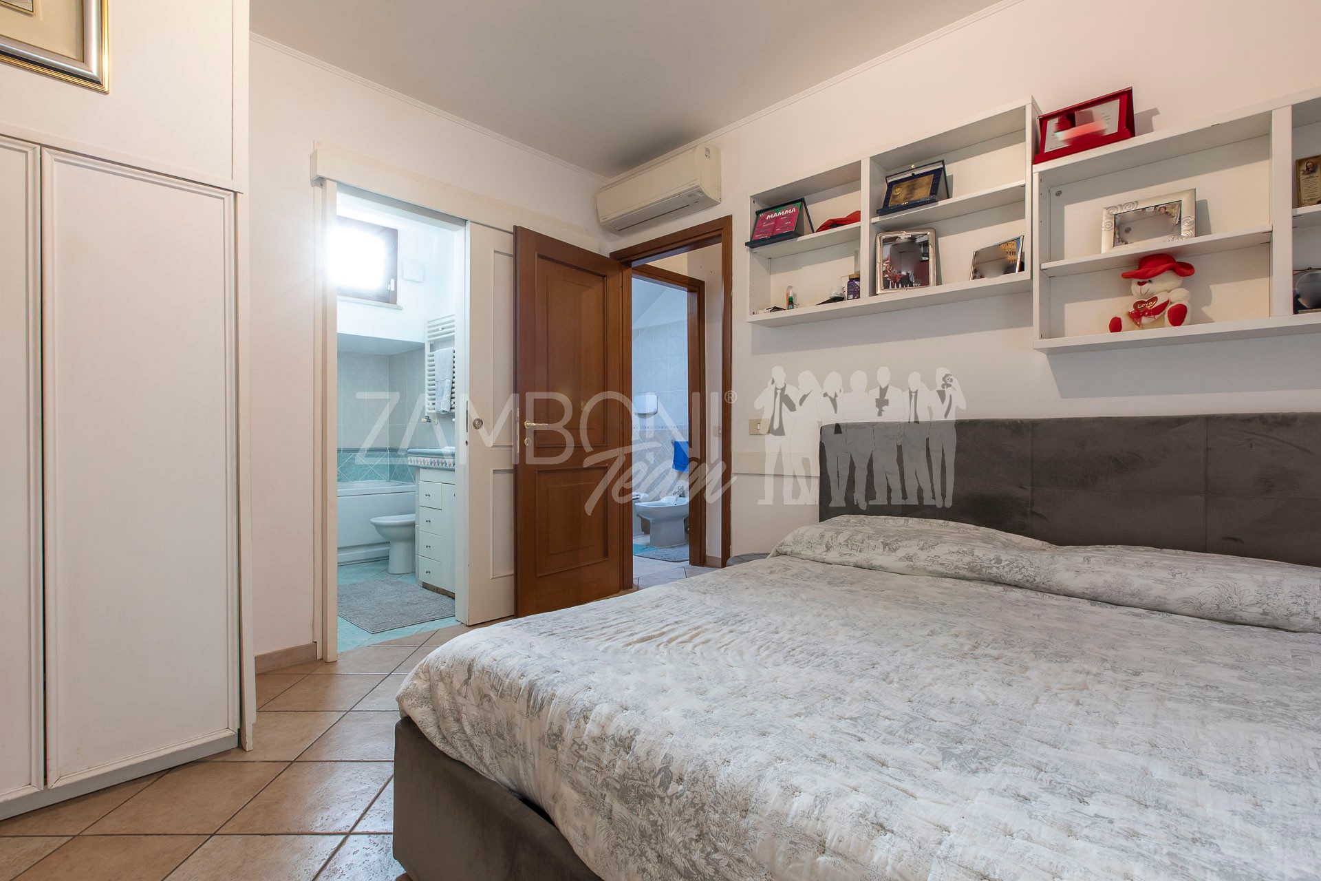 Scendendo al piano seminterrato sbancato, si trovano due ampie camere da letto, di cui una con bagno en suite e cabina armadio, uno studio e un ulteriore bagno. Da questo piano – ma anche attraverso il giardino – si accede a un delizioso patio, un angolo intimo e riservato ideale per momenti di relax.