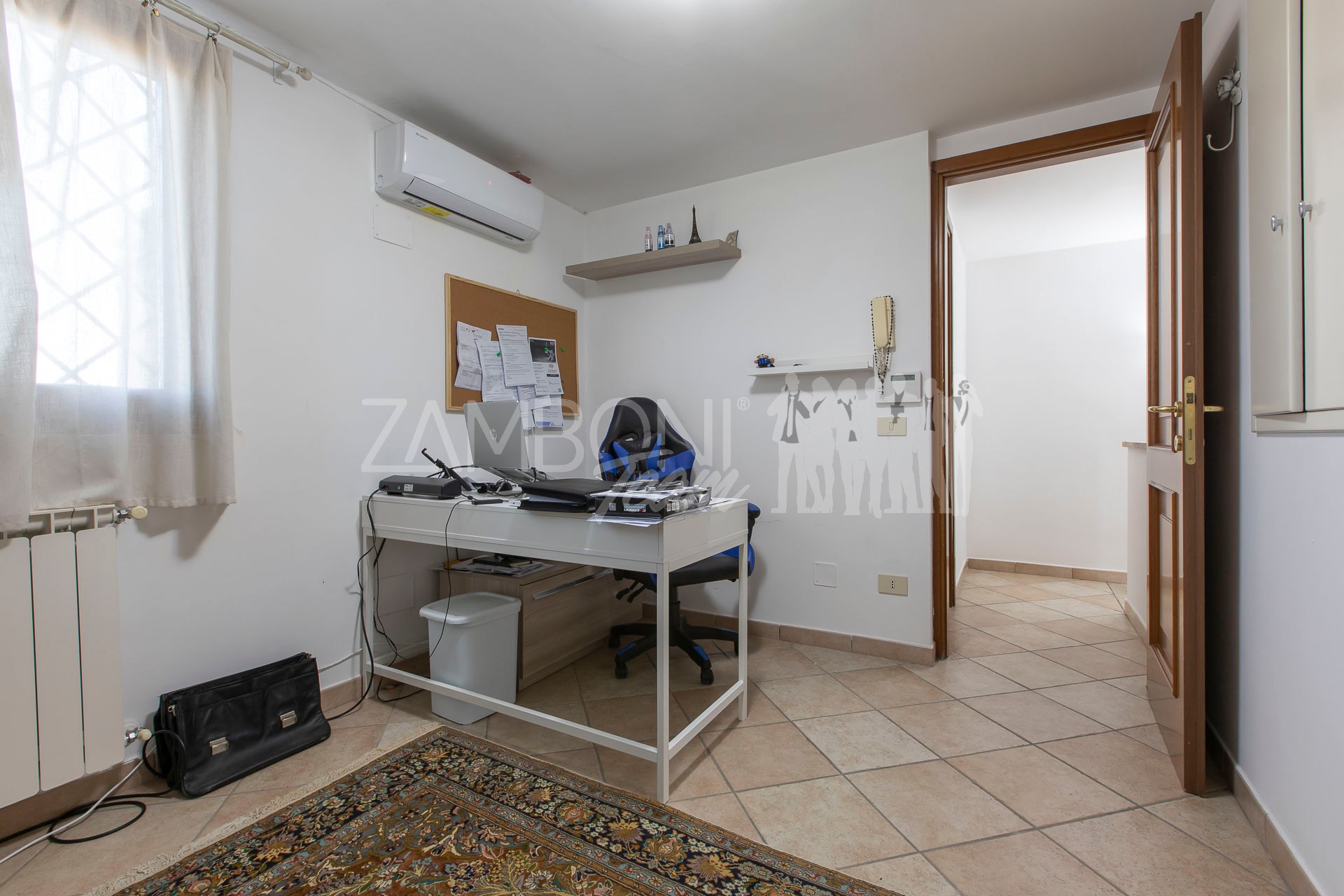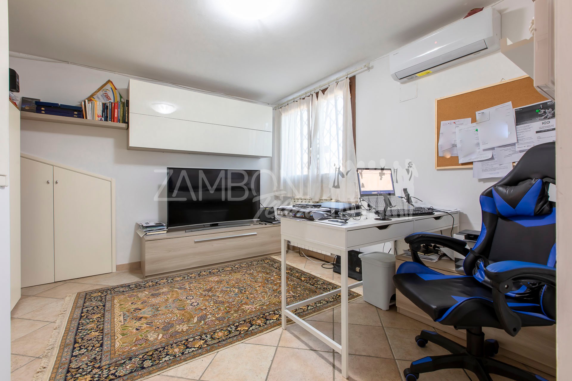 Salendo al primo piano, è presente una luminosa camera/studio con bagno privato, ideale in caso di smart working..