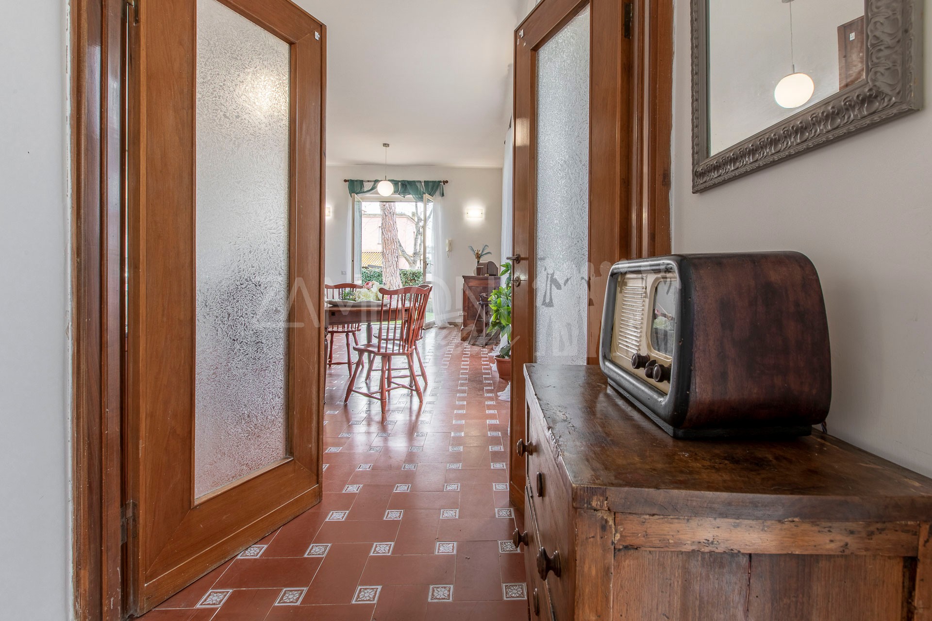 Nel giardino trova spazio un comodo garage, con accesso sia interno che esterno all’abitazione, elemento che aggiunge funzionalità e comfort alla proprietà.