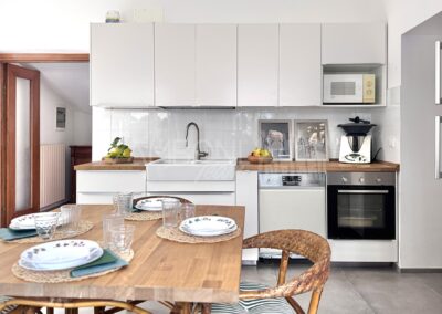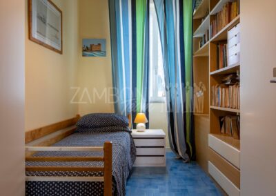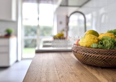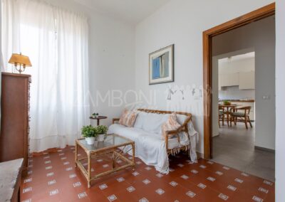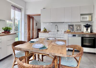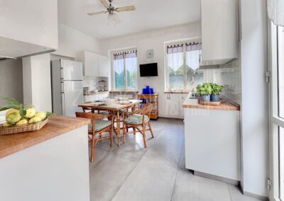 La cucina, di generosa metratura, è pensata per essere vissuta: uno spazio accogliente dove cucinare e pranzare nello stesso ambiente, con affacci aperti sul verde. Sempre al piano terra troviamo una camera polifunzionale – ideale come studio, camera ospiti o stanza per chi desidera vivere su un unico livello – e un bagno di ampia dimensione.
