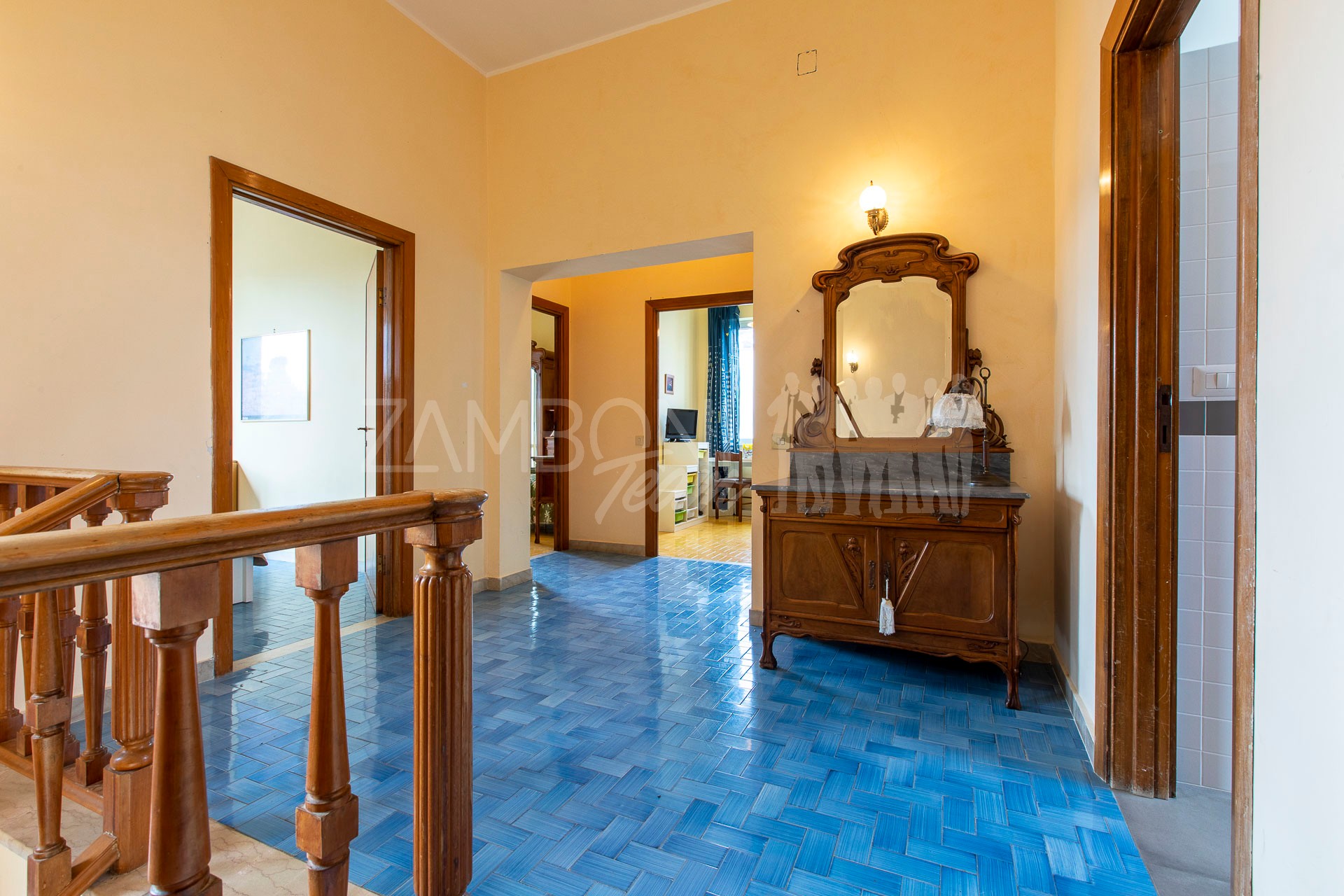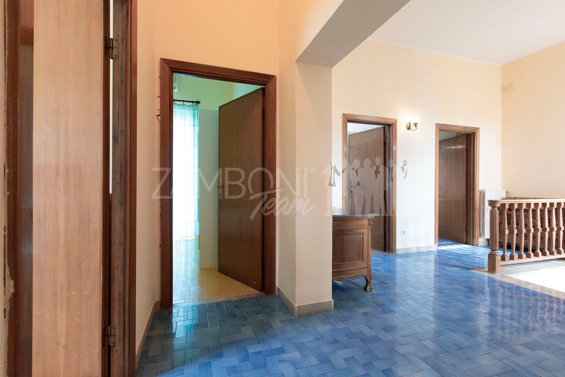 Il piano superiore ospita quattro camere da letto, ben distribuite e versatili, perfette per una famiglia numerosa o per accogliere amici e parenti. Completa il piano una grande sala da bagno. Due ampi terrazzi panoramici arricchiscono la zona notte, regalando affacci aperti e una piacevole sensazione di ariosità.