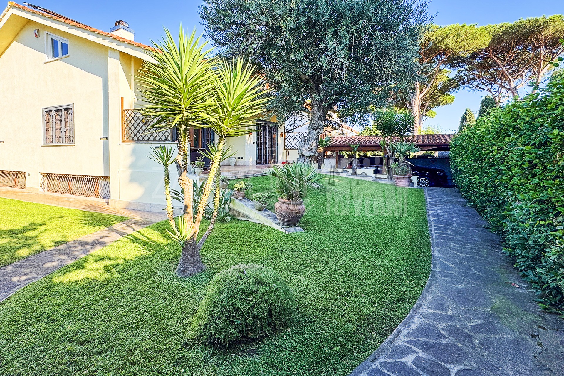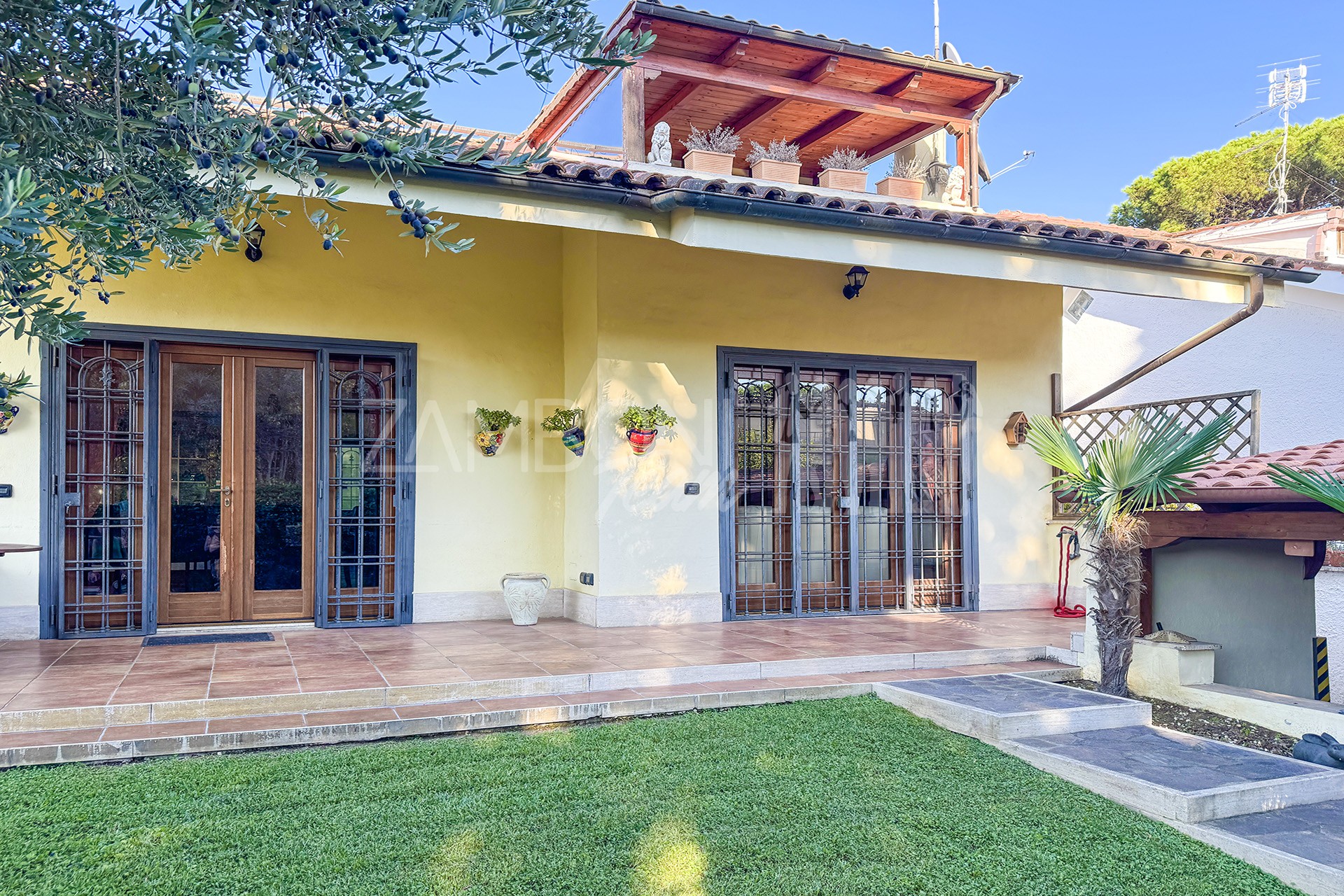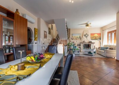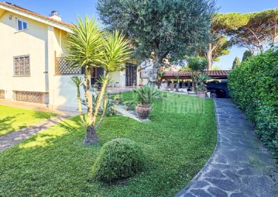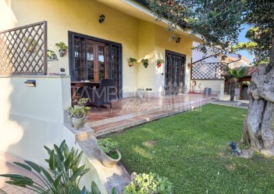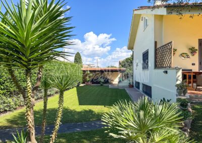 La villa, libera su tre lati, si sviluppa su tre livelli collegati internamente, offrendo ambienti raffinati e funzionali.