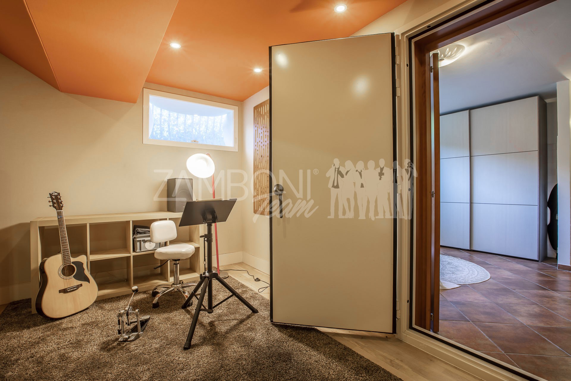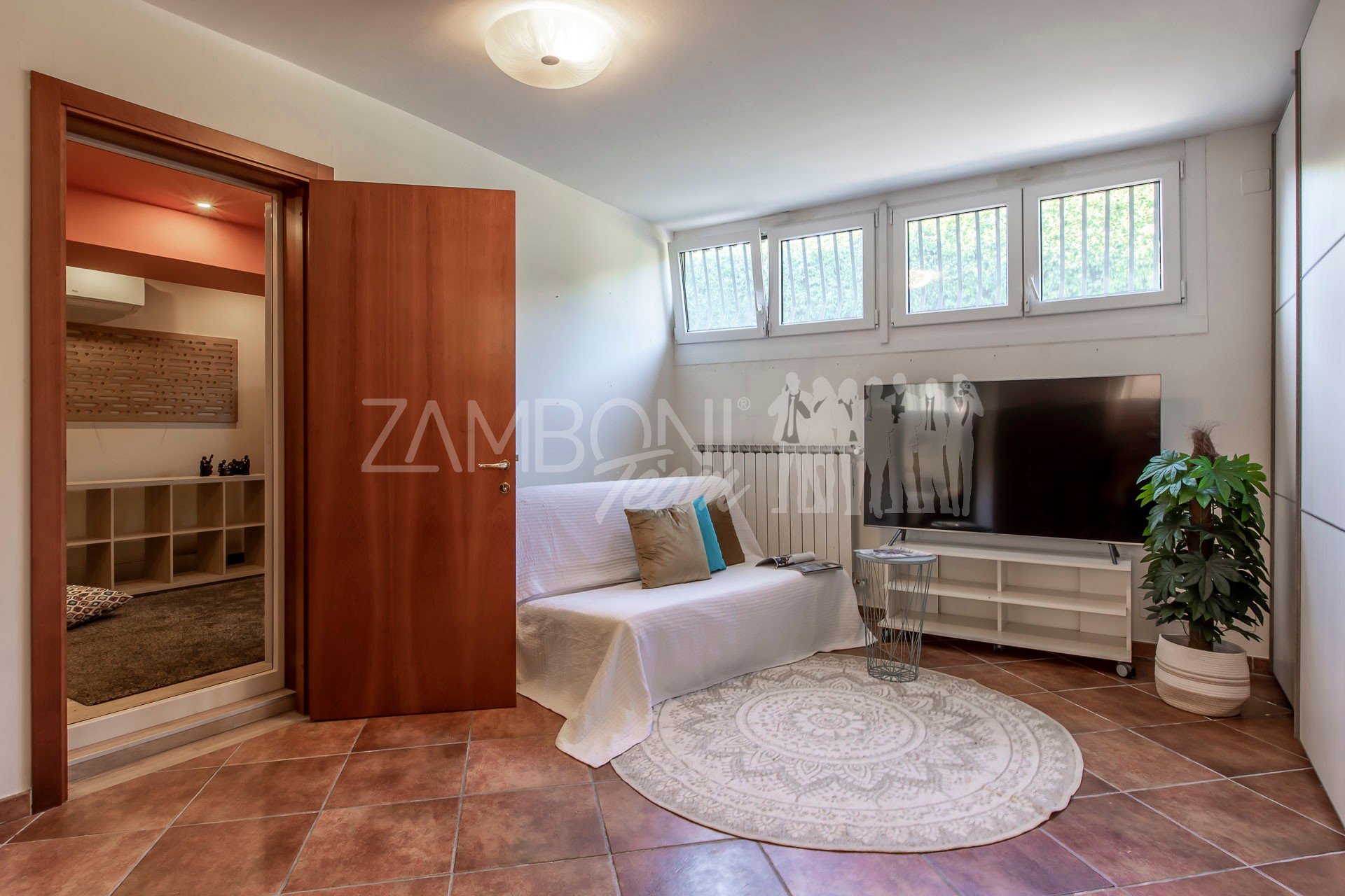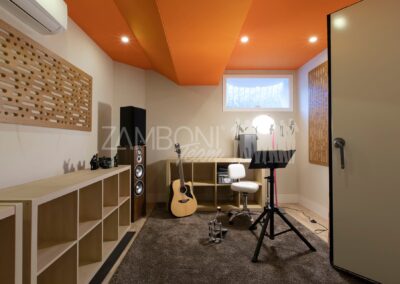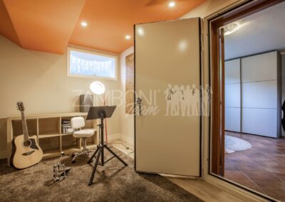 Il piano seminterrato, completamente residenziale, รจ un ambiente autonomo e luminoso grazie alle finestre e al secondo ingresso indipendente. Comprende un soggiorno con predisposizione per cucina, una camera matrimoniale, una cameretta, un bagno finestrato con doccia, sala insonorizzata per musicisti e ripostiglio. Questa zona รจ perfetta come appartamento indipendente, area ospiti o studio professionale.
