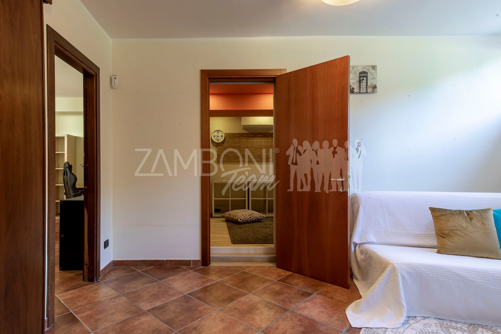 Al piano terra troviamo un comodo ingresso con ampia dispensa/ripostiglio, collegato ai livelli superiori.
