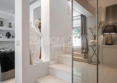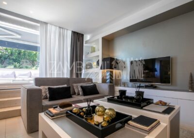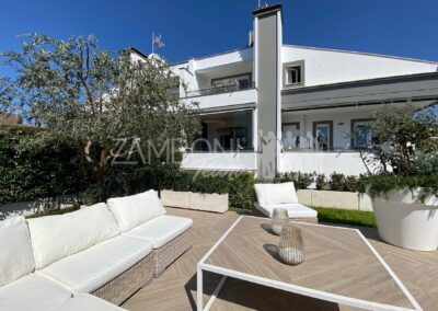 • Finiture di Prestigio: Le finiture di alto livello e l’uso di materiali moderni donano a questa villa un aspetto contemporaneo e affascinante, distinguendola nel panorama residenziale della zona, caratterizzato da mobilia e pareti su misura attrezzate.