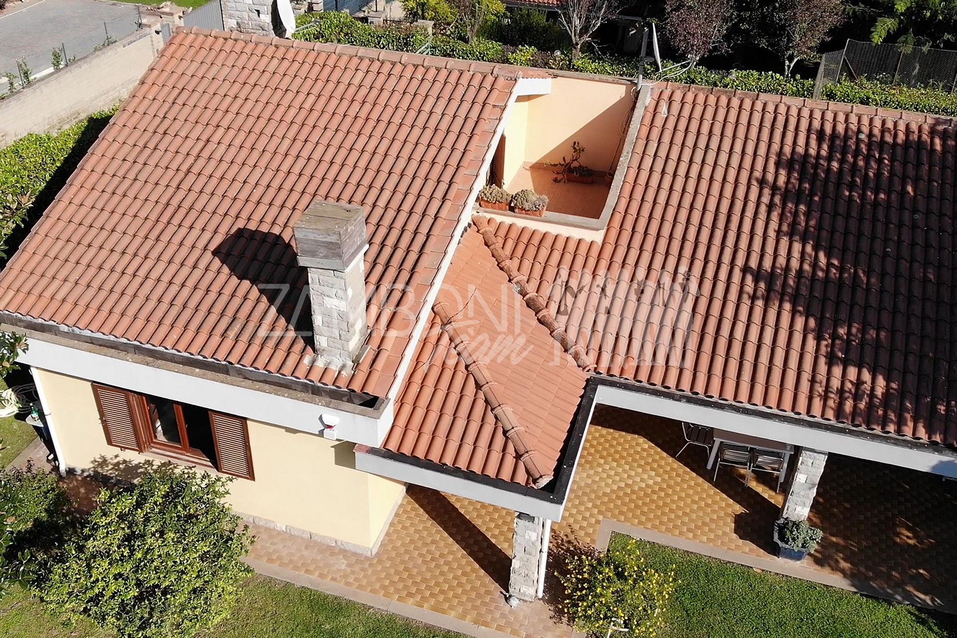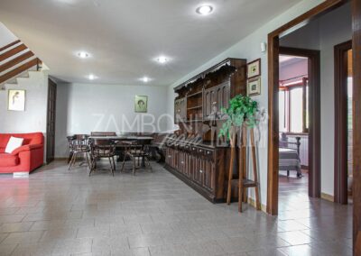 La villa, sfruttando la conformazione geografica del luogo, crea due piani terra grazie anche alla presenza di due passi carrabili, ideale per due famiglie che vogliono vivere vicine o ideale per essere frazionato.