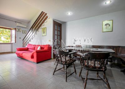 Una comoda scala conduce al piano superiore, un locale ballatoio dai molteplici usi dispone di un accesso diretto a una terrazza panoramica, un autentico balcone sul prospicente Lago di Bracciano.
