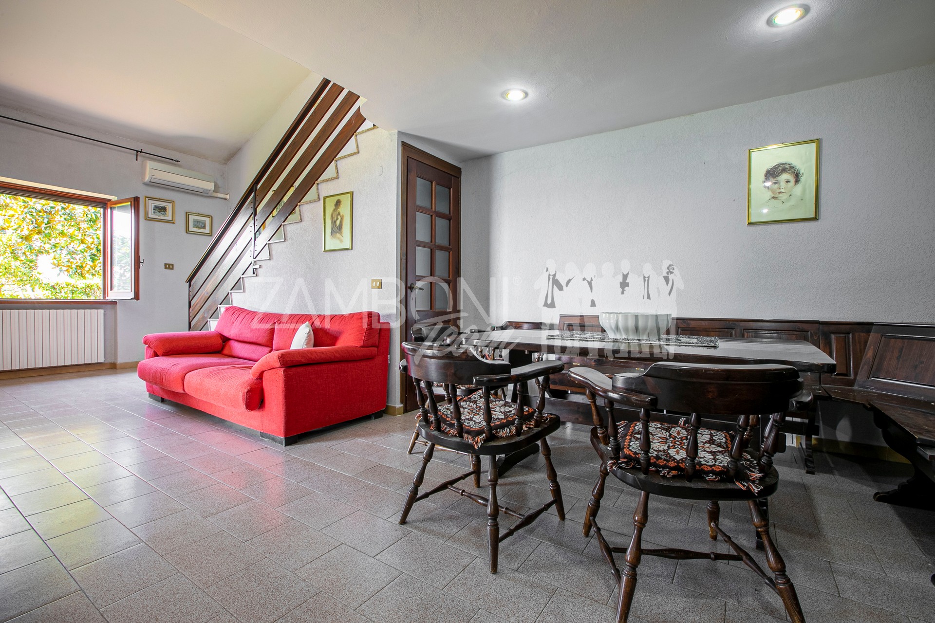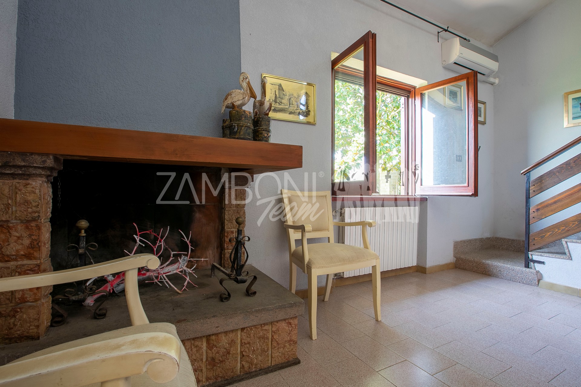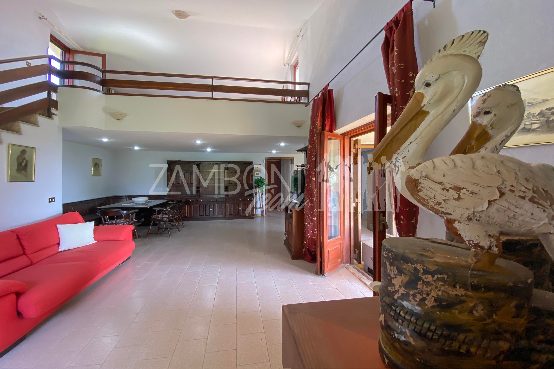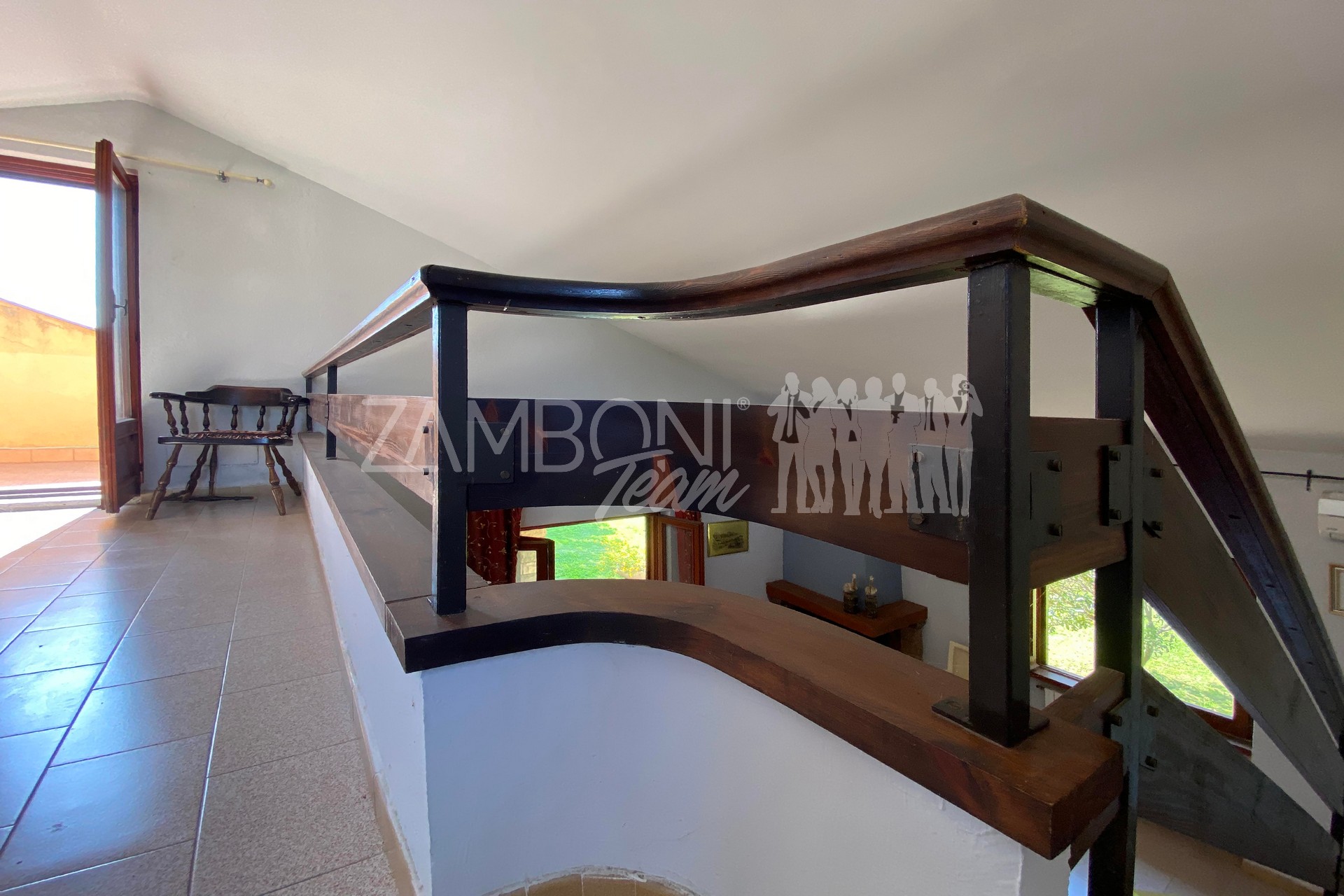 A comfortable staircase leads to the upper floor, a gallery room with multiple uses has direct access to a panoramic terrace, an authentic balcony overlooking Lake Bracciano.