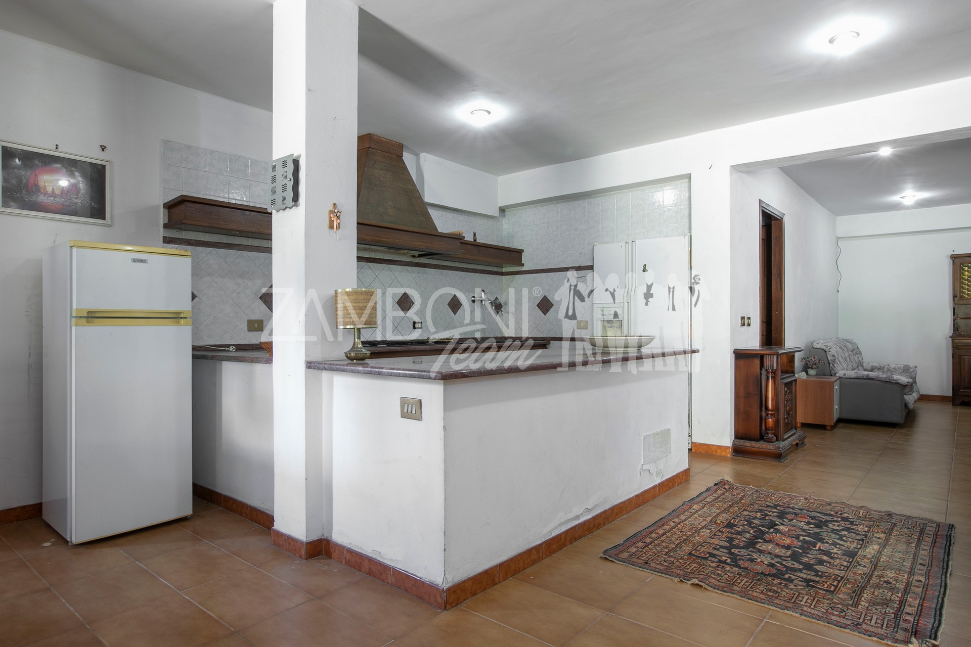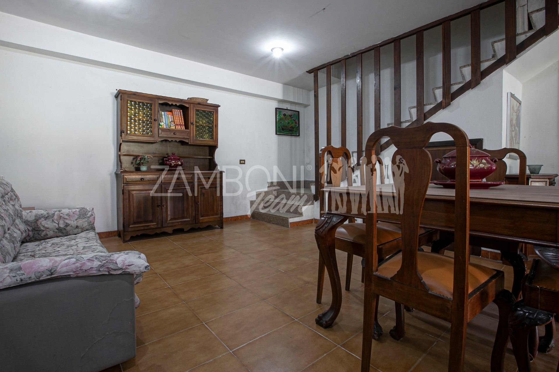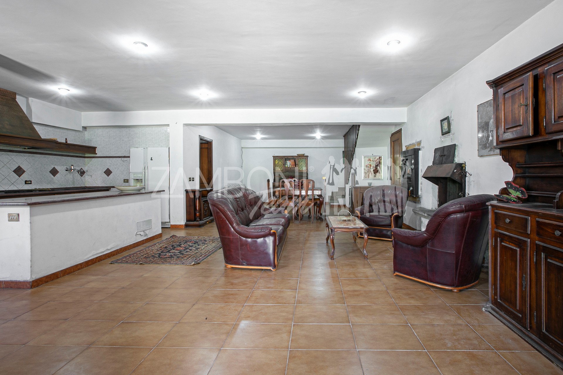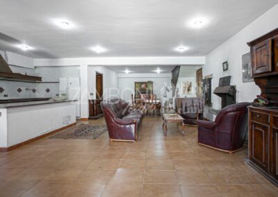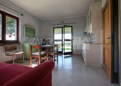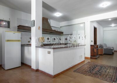Entrando dal secondo cancello troviamo un generoso salone con angolo cottura, un bagno, un ripostiglio e una sala dedicata alle attività ricreative.