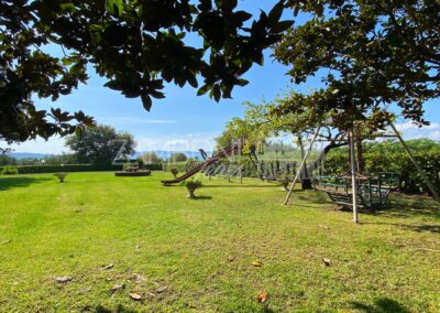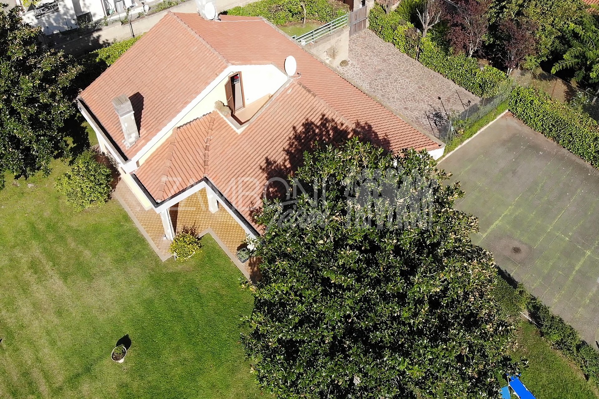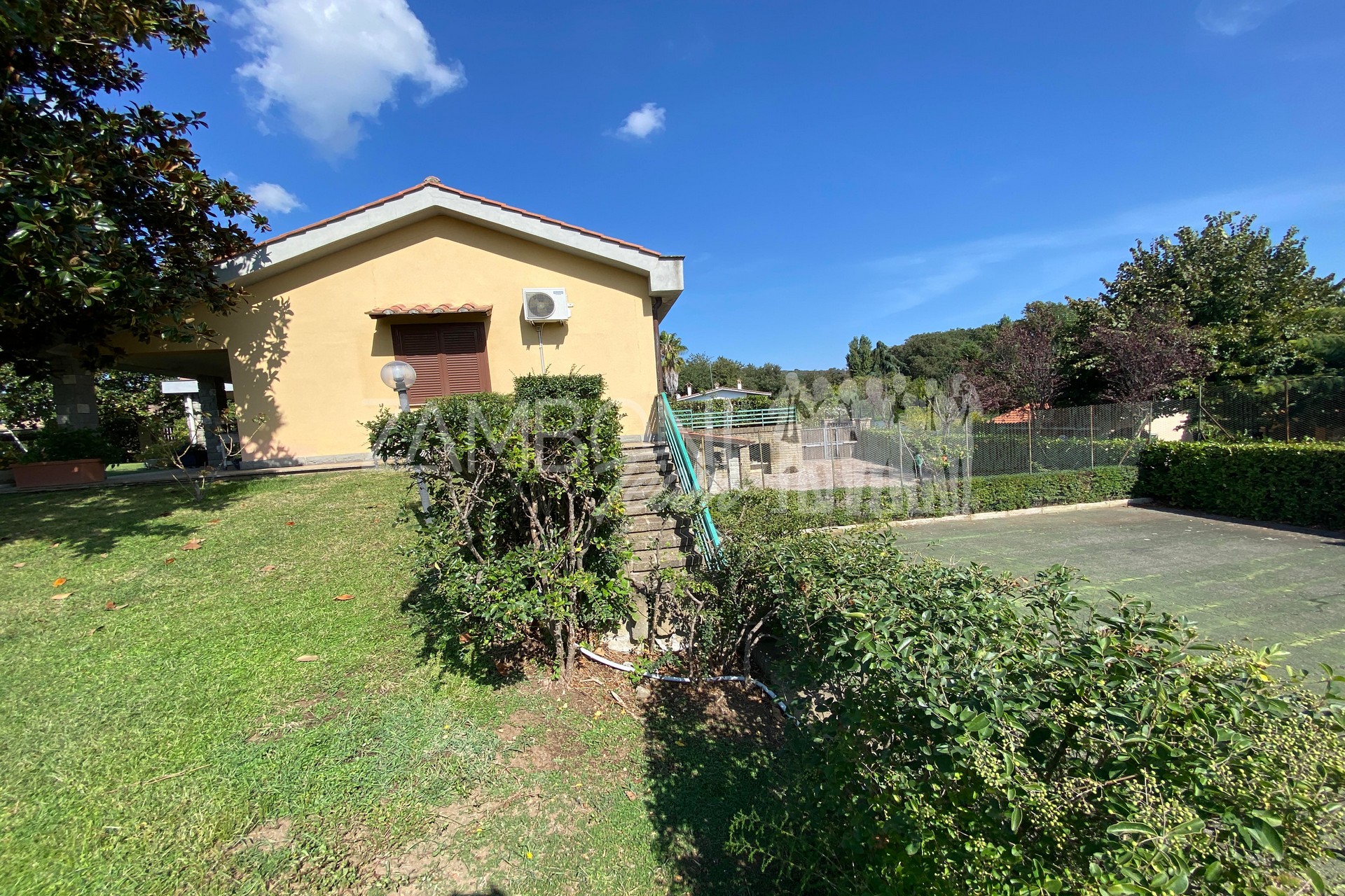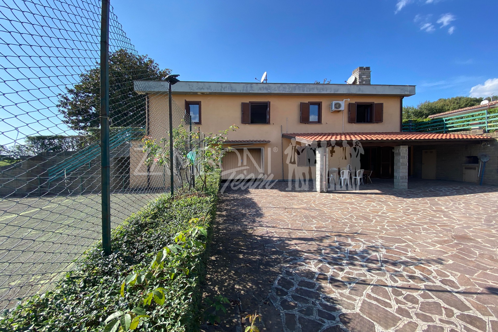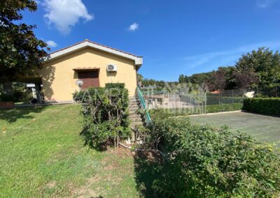 A completare il tutto un campo da tennis, luogo ideale per poter ricreare una bella area piscina.
